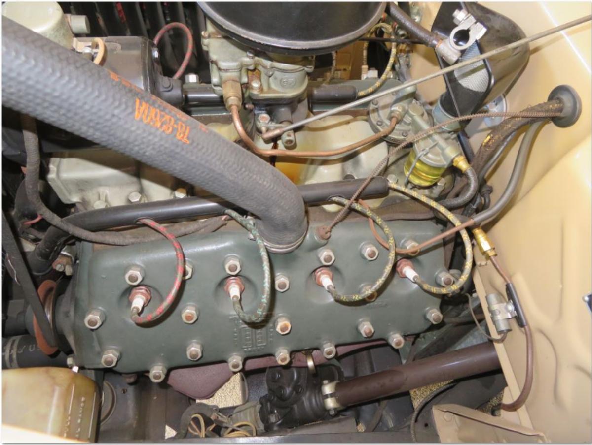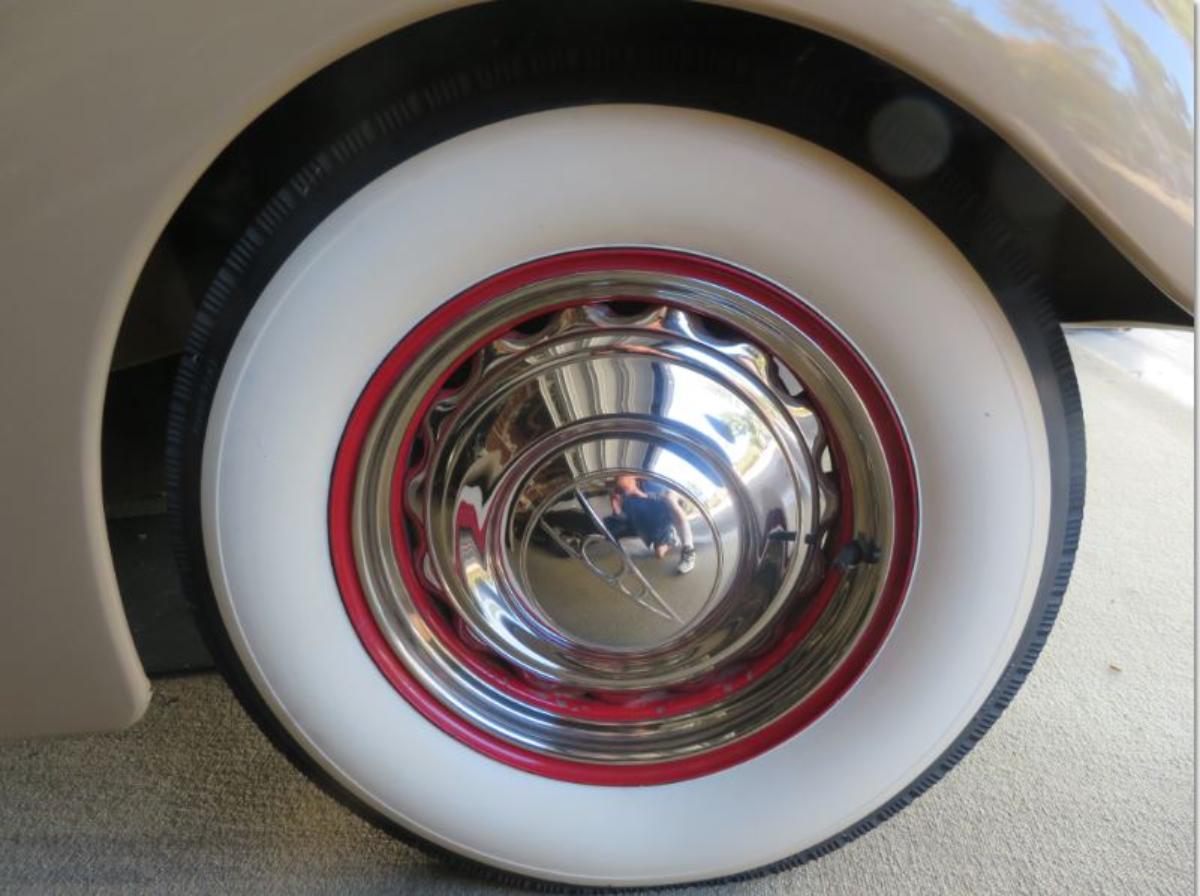 Car Factory Correct Accessory Components on Car: Stainless Wheel Covers, and Trim Rings; Deluxe Steering Wheel Restored; Air Cleaner Hat Type; Electric Clock Glove Compartment, Hood Locking V-8 Ornament; Both Side Mirrors; Bulb and Fuse Kit, Gas Tank Locking Cap; Restored Radio Open Car, Rear Fender Skirts, Glove Box Door Clock Electric, and Excellent Luggage Rack Factory Original. Radio Restored with all Factory Parts , the Special Radio Mounting Firewall Toothed Washers.