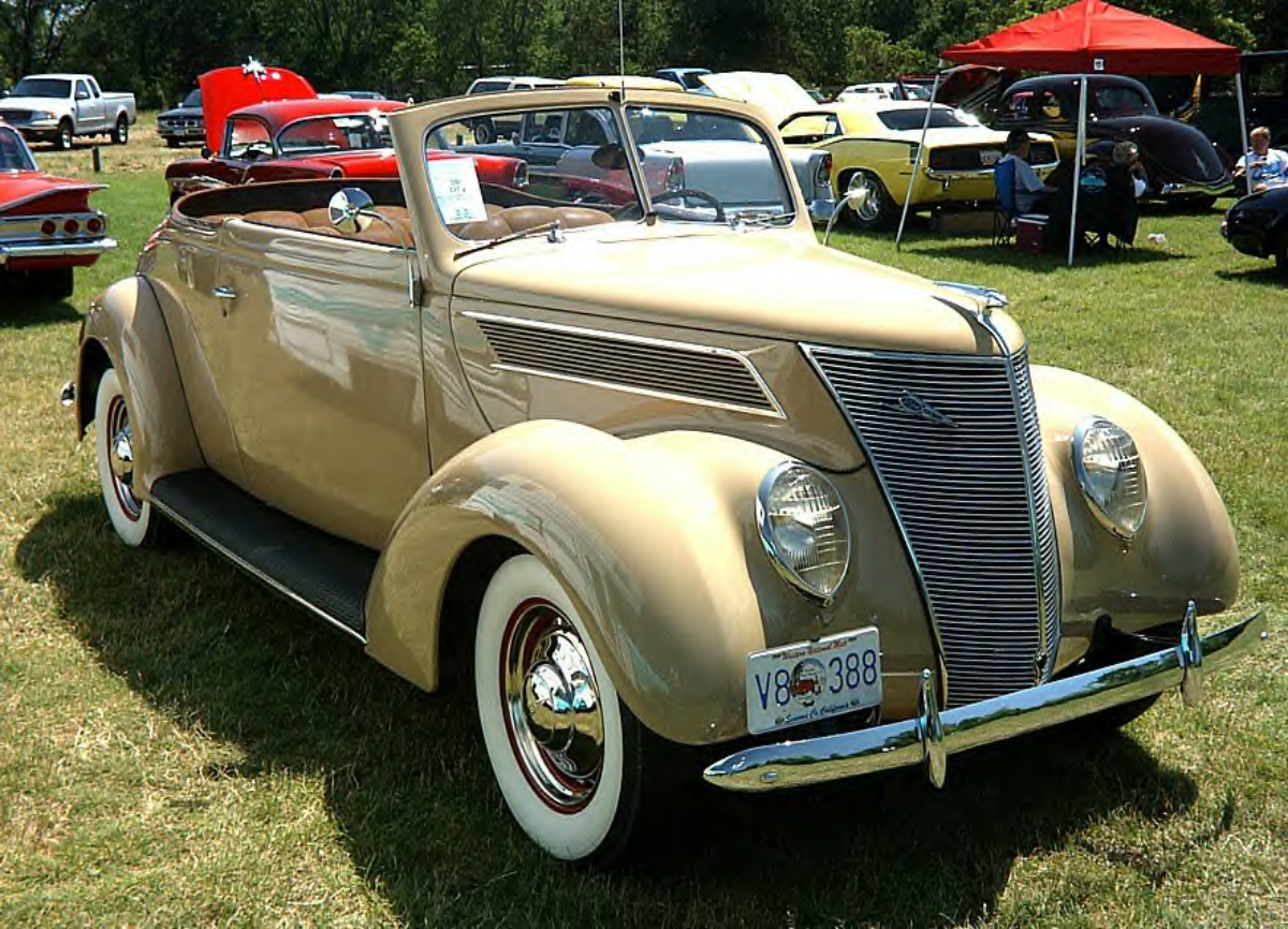 Jack's 1937 Ford Club Cabriolet being sold with 100's of NOS and Rare Factory Original Parts & Factory Accessory Parts and Sales Albums , Literature. This is a Rare Model, as they made only 8001 of these and made 765,933 Total in 1937 which is less than 1% of total production. It Weighs 2,640 lbs and has a wheelbase of 112”. It is painted Adobe Tan which is a Factory Spring Color. The Serial Number is: 183399363. Car is rated Excellent Driver Quality. Car has been family owned for 33+ Years. I am the only one who has driven this Car.
