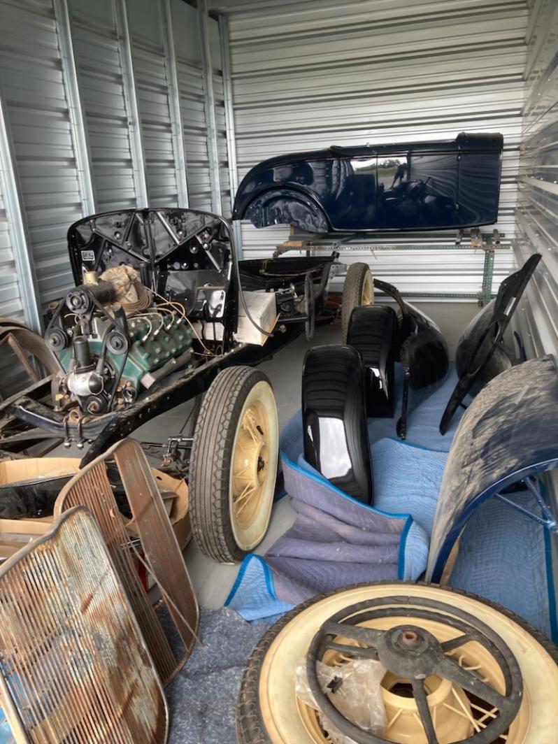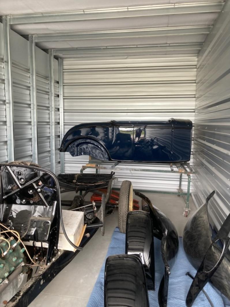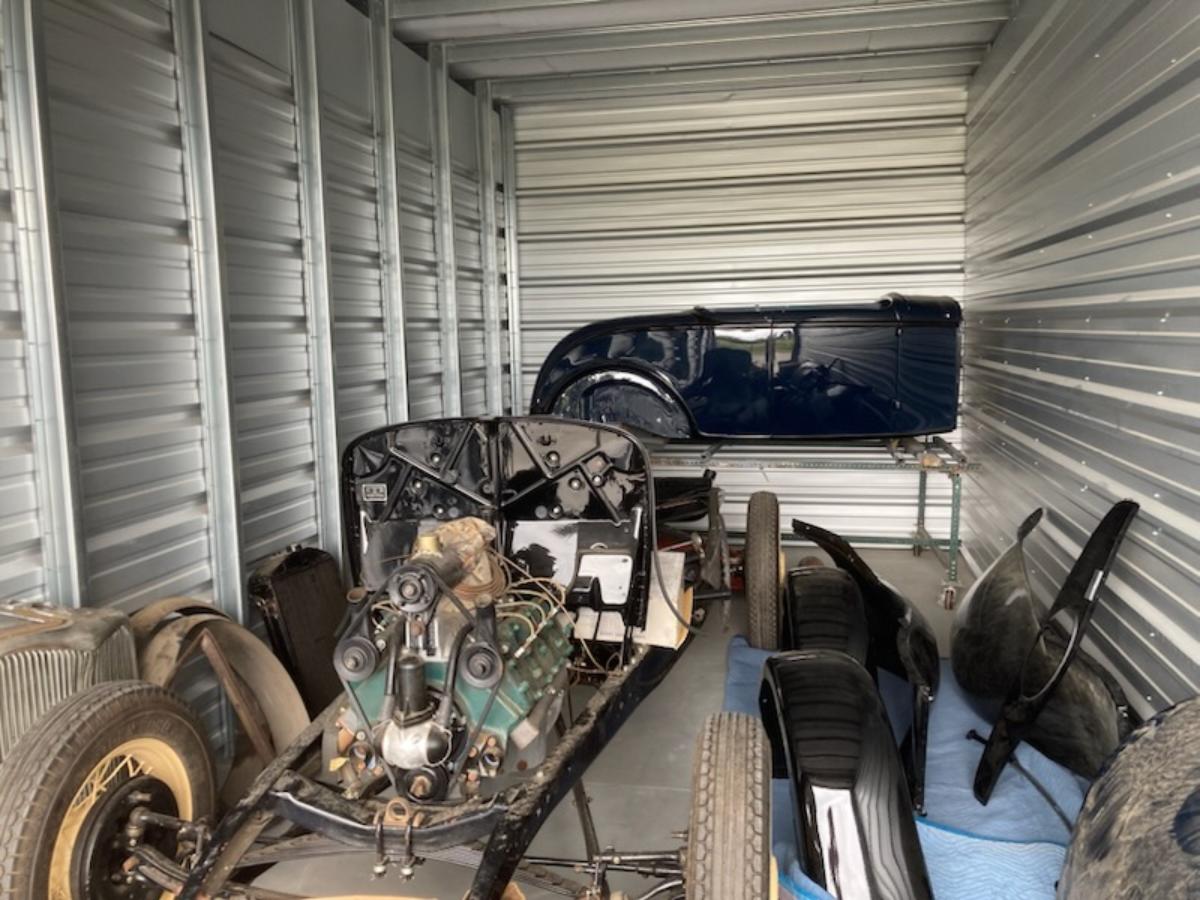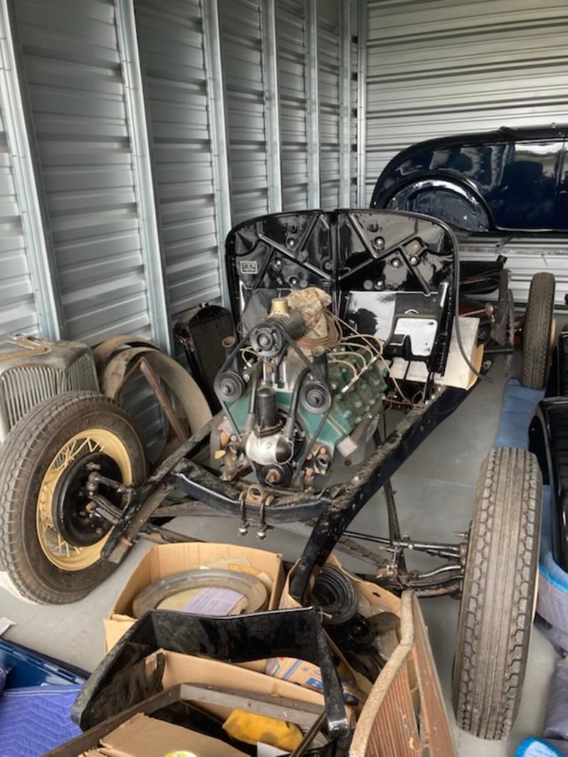 1932 Ford Roadster Project with most parts included. Steel body, fenders, grill, trunk lid for rumble seat. Rolling chassis with flathead V-8.