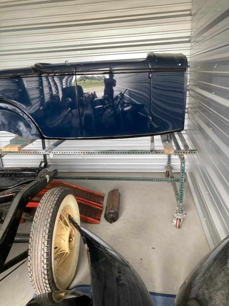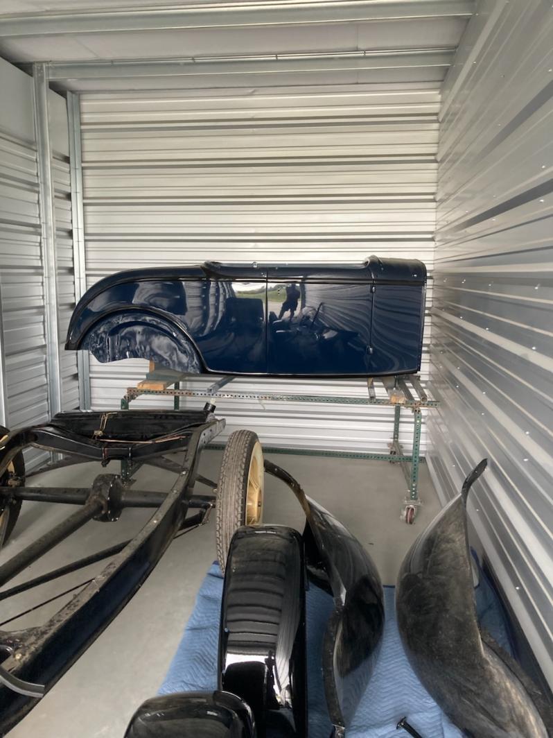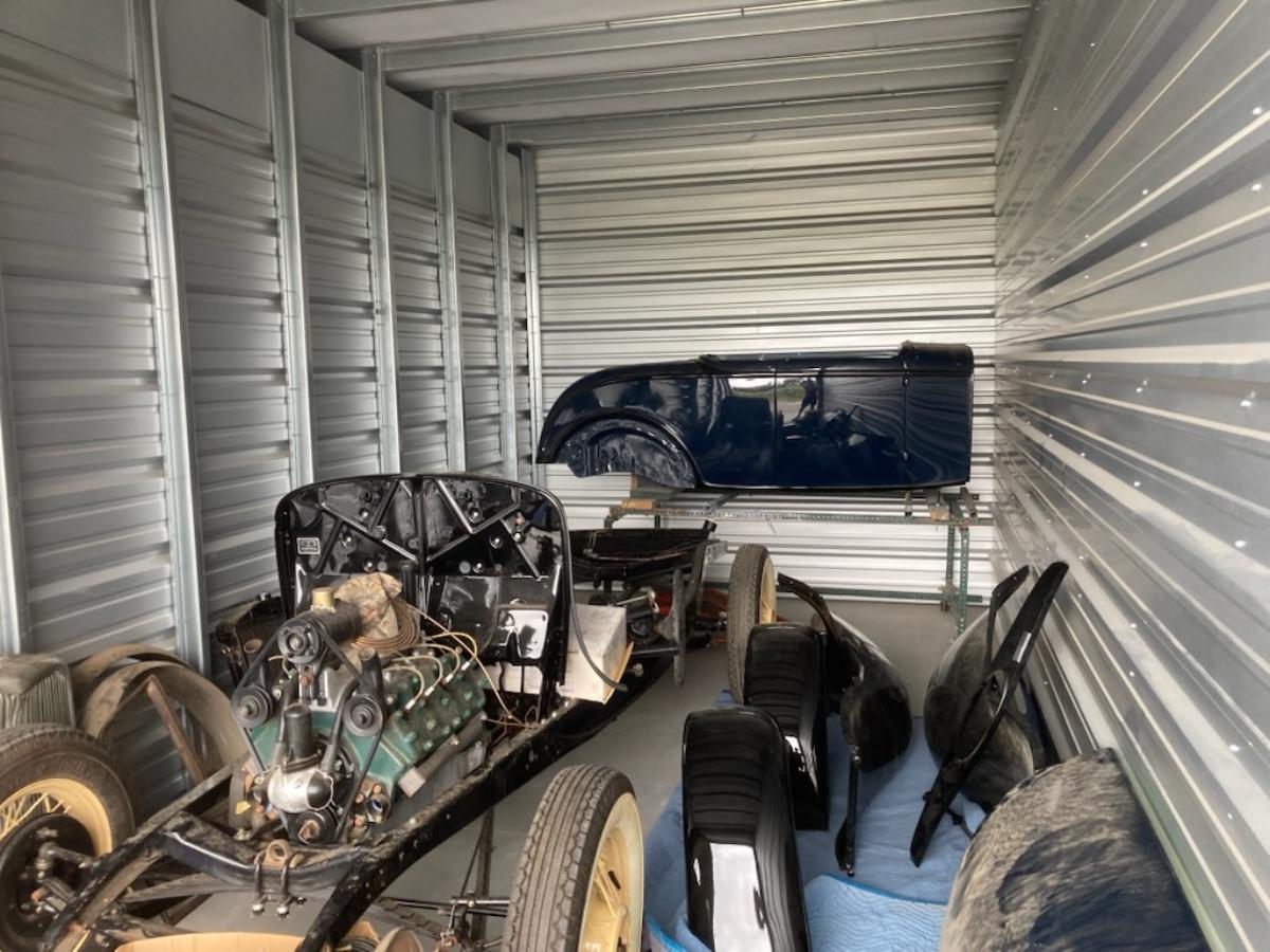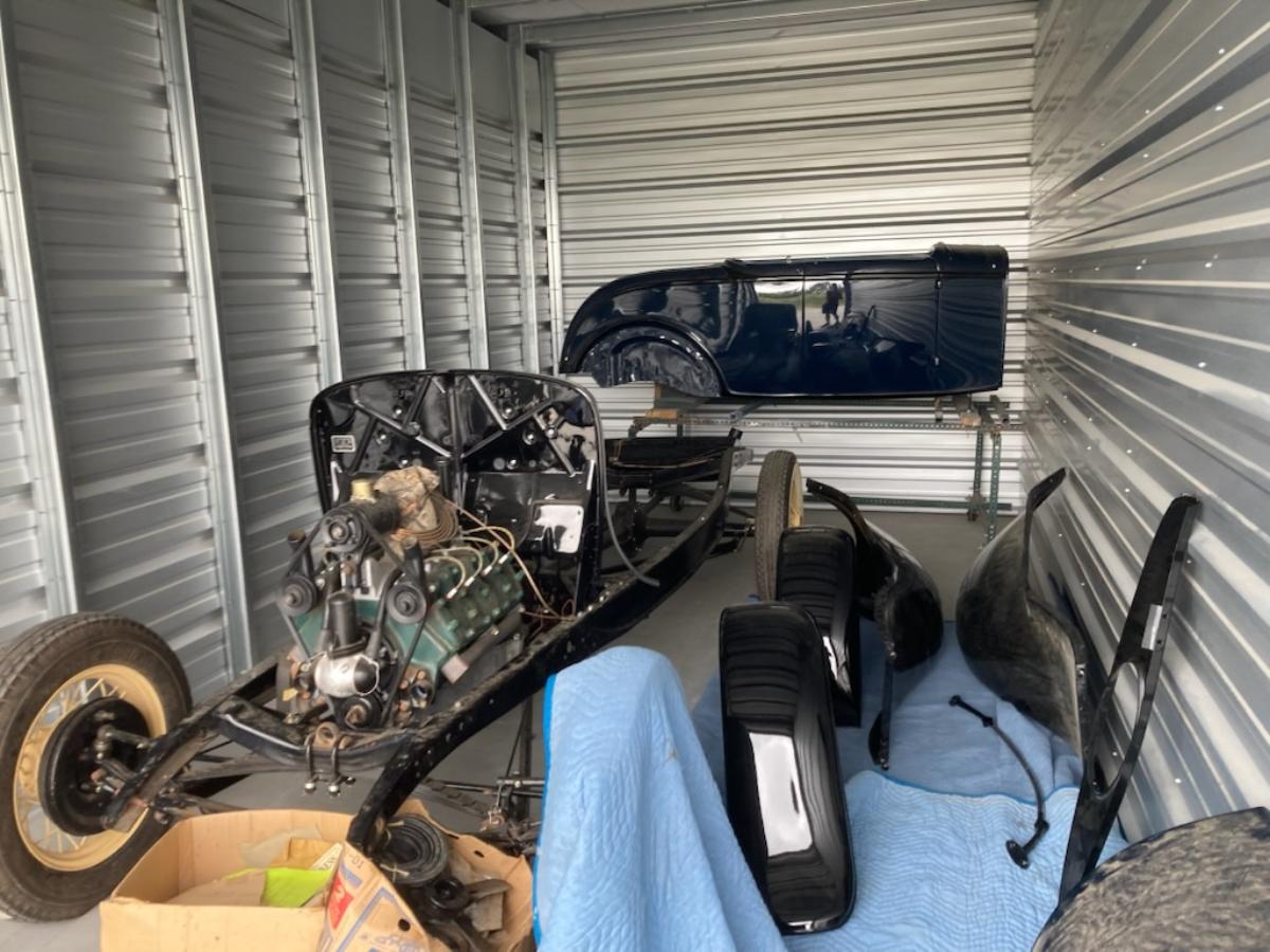 1932 Ford Roadster Project with most parts included. Steel body, fenders, grill, trunk lid for rumble seat. Rolling chassis with flathead V-8.