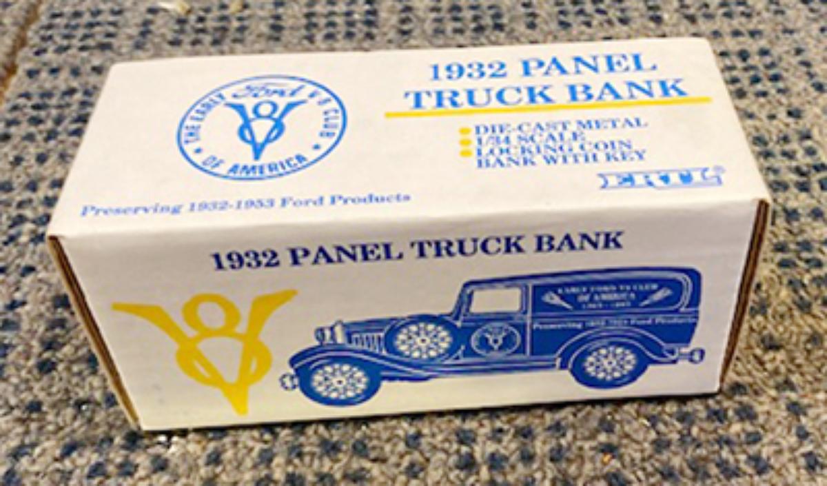 EARLY FORD V-8 NATIONAL COLLECTIBLES: 1932 Panel Delivery Van, 30th anniversary tool bag, three ceramic coasters with EFV8 club logo. Asking $35 for All. Check/Money Order only.