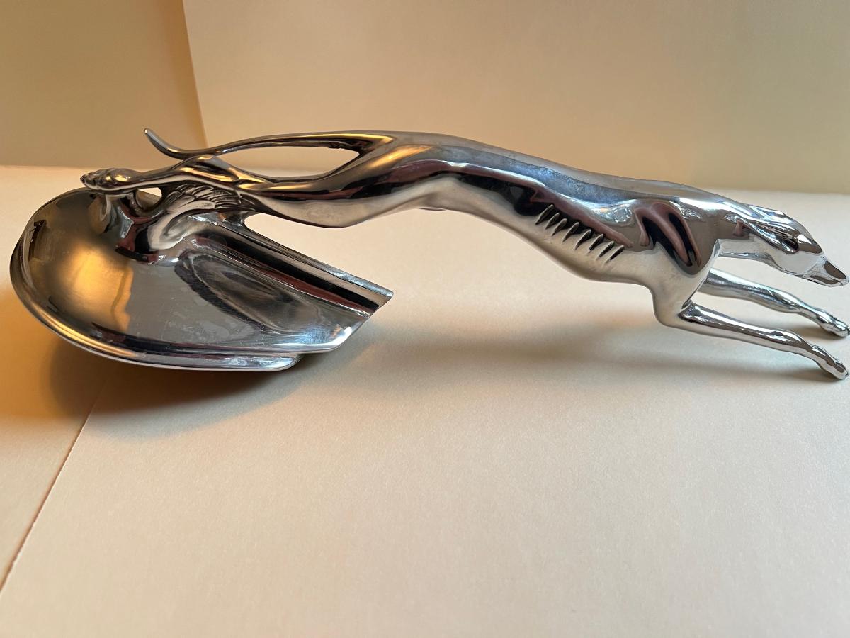 SOLD! 1934 Ford Greyhound Radiator Mascot, American Arrow Stainless Steel and Chrome-plated, Unused