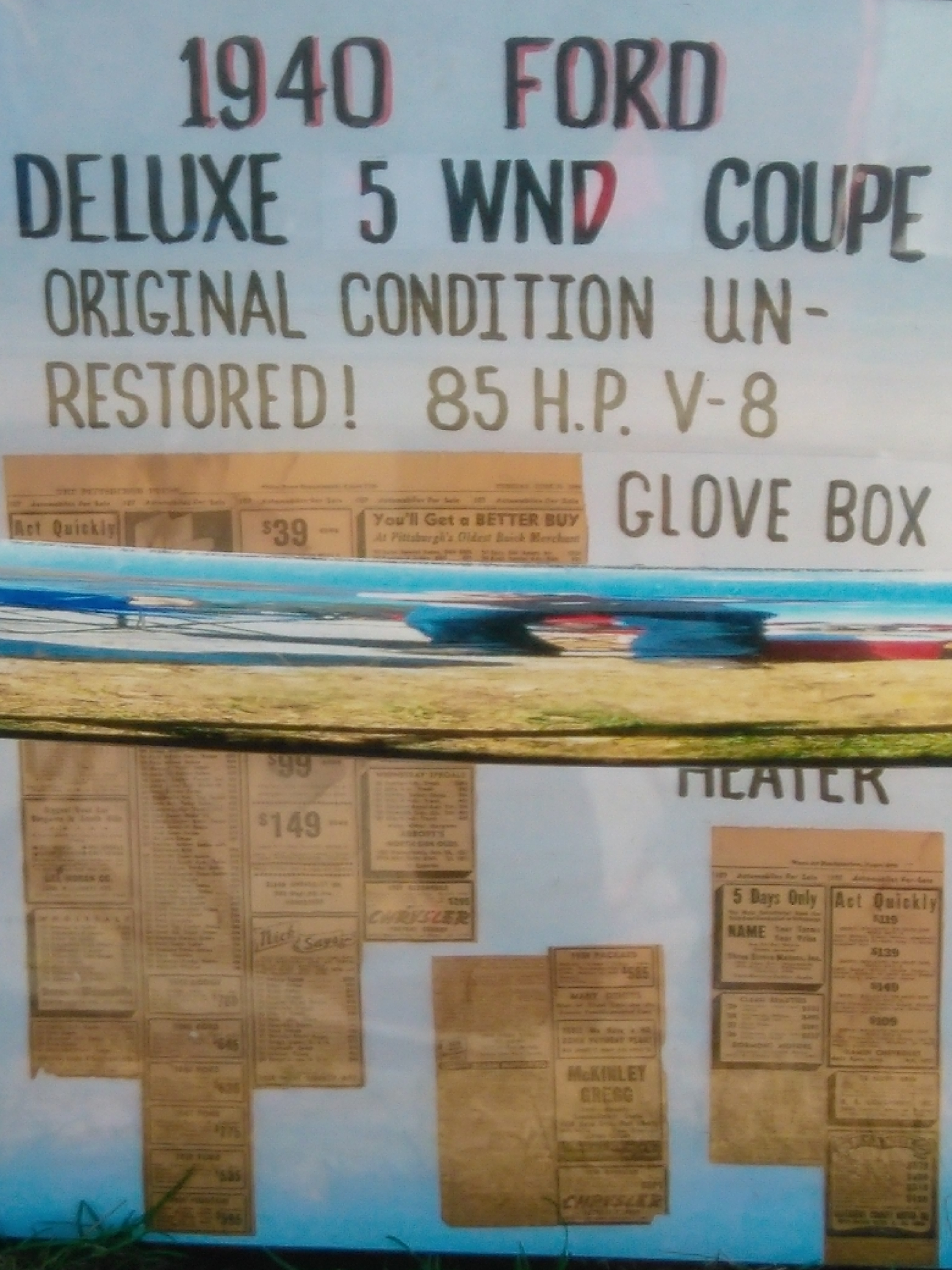 Original 40's newspaper add showing Ford's for sale between $500-700. dollars.