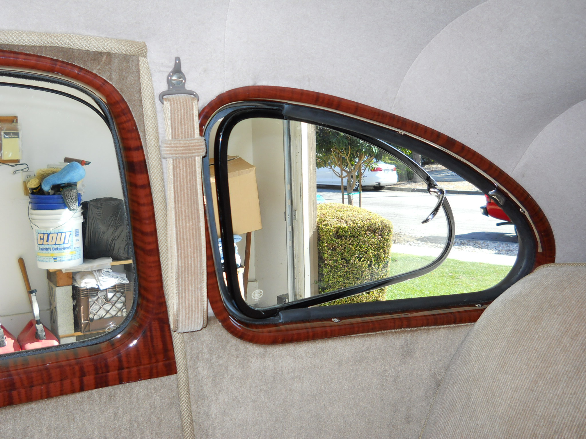 The window moldings were wood grained as you suspected. The grain (and shade) is quite different on the Ford V8 models (aka "standard") than the Deluxe models.