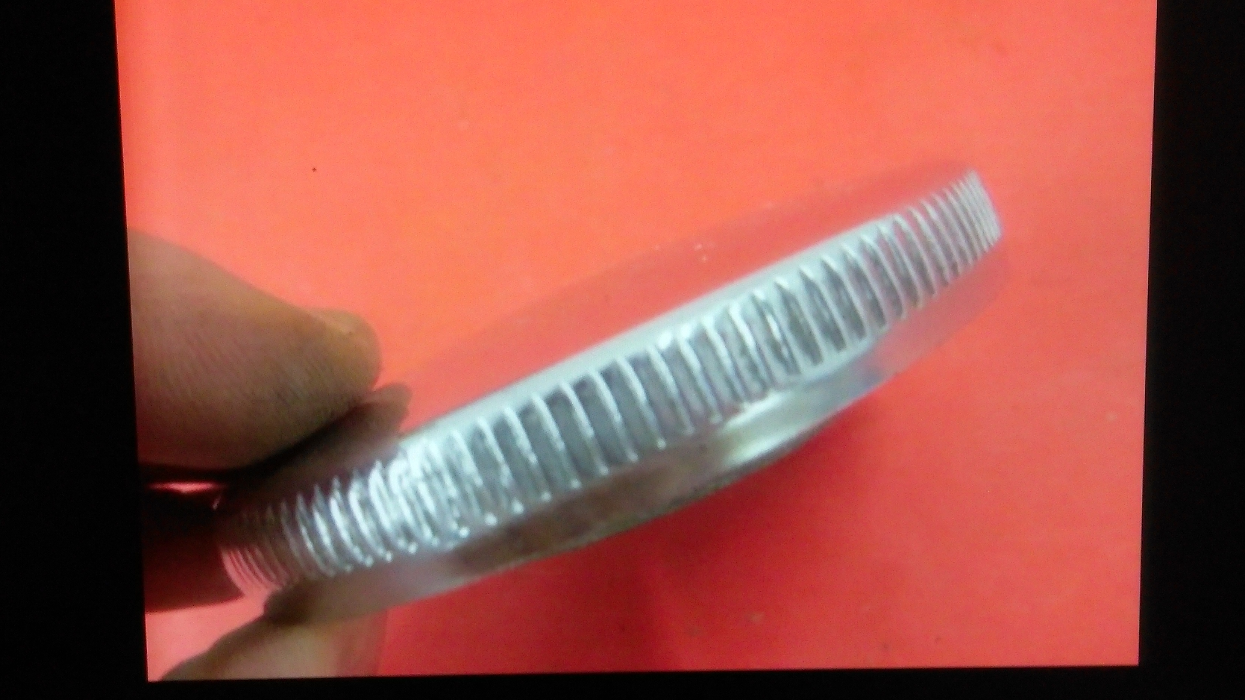 Here is another picture of the side edge of the 1932-thur 1935 gas cap. Ninty five percent of the so called original 1940 Ford gas caps that I have seen for sale have a flat outer ridge before dropping off to the knurneled side edge. Should the original 1940 gas cap have a flat outer edge or not? Were these original 1940 Ford, non-locking gas caps chromed steel, or were they flash chromed stainless steel? Domenic Domenic