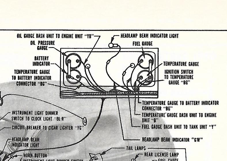 Here is the wiring and schematic diagrams for the instrument panel note the TWO B/G wires on the temperature gauge one of the two goes to the ignition switch, the second goes to the battery indicator.
