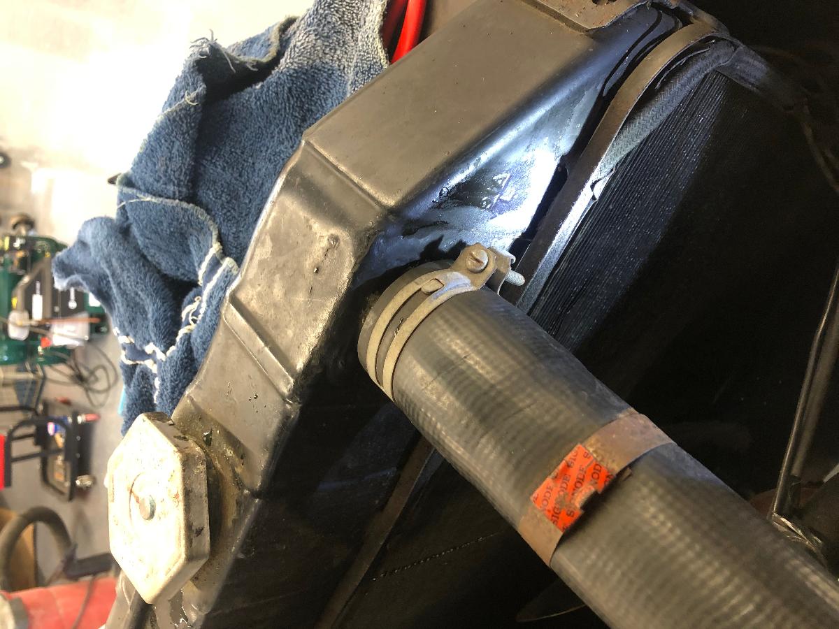Went to work on the oil pressure issue. It was a bear to get the sending unit off to put the oil pressure test gauge in. It hold 60 pounds, so I assume it is not the oil pump. Discovered that my radiator is a 91A with an L underneath it. The fill is in the center rather than on the side, so it was replaced at some point I guess. I had to take the floor boards off along with the transmission cover to get to the sending unit. Not as easy as I thought. Found the KingSeeley unit stamped with a 3 on the top and 80 stamped on the brass. YOUNG was on the plywood on the drivers side. It's fun to take Mike's book out to the car and "see what I have".