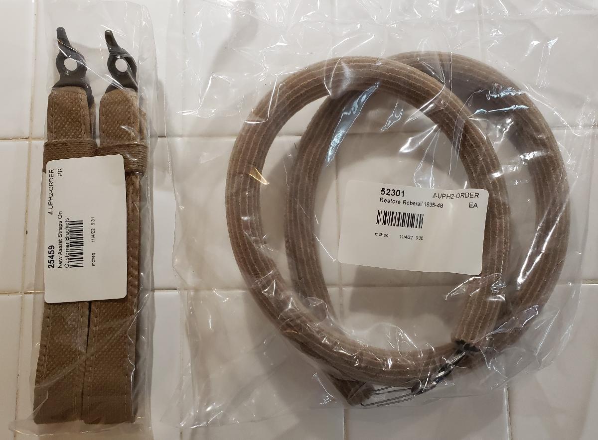 The Robe Cord and Assist Straps for my 1940 Ford Fordor Deluxe just arrived from Cartouche! They look very good go me. They put new fabric loops (to match my Windlace) on my original, repainted Brackets. I hope to install them later in the week after the rain stops.