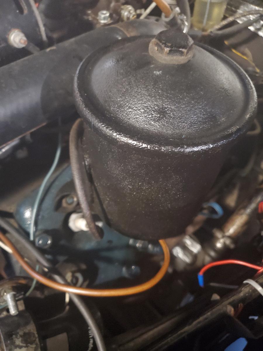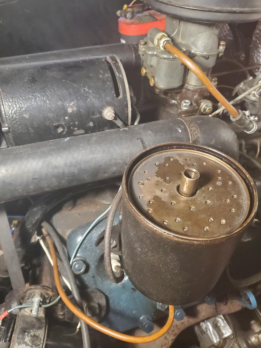 I recently acquired a 1941 Ford Super Deluxe and have never seen an oil filter element like this. The side of the element has no holes and are instead located at the top and the bottom. All of the other elements I've been able to find for this era of Ford have them on the sides. Has anyone seen one like this and any advice of how to freshen the filter for the car? I imagine this is reusable...wondering if cleaning in gasoline would work.