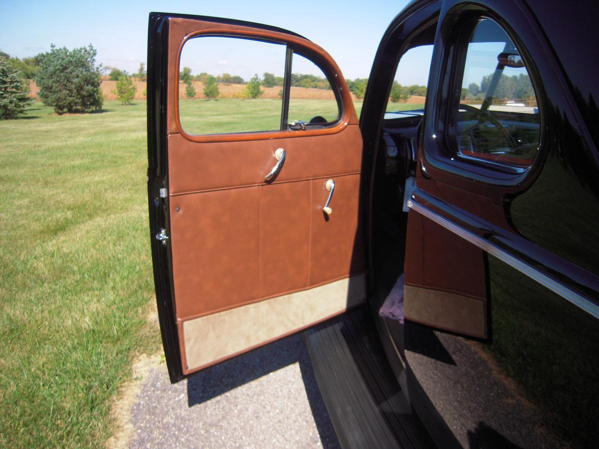 Leather in closed cars was an authorized option. It cost about $45 (retail)to have installed. It (leather option) was not advertised and according to a letter to the dealers it was only to be ordered as a method to save a car sale. I don't recall the exact quote, but it was something to the effect that if a customer insisted on leather or they would walk away from the new car sale, then they could get it. In other words, Ford discouraged the sale of leather. The patterns seemed to be the same as leatherette (convertible) interiors for the panels. The (leather)seats were patterned after the convertible. However, please keep in mind, I was unable to find any document that spelled out the exact pattern to be utilized. I had witnessed two coupes that were restored decades ago with leather interiors that mocked the cloth interiors. I have never witnessed an authentic leather interior that matched those "restorations". It is said, and I firmly believe this, that are far more '40 Fords with leather interiors now than were ever built. I'd restored a few but have never been a big fan of such. Mike "Kube" Kubarth