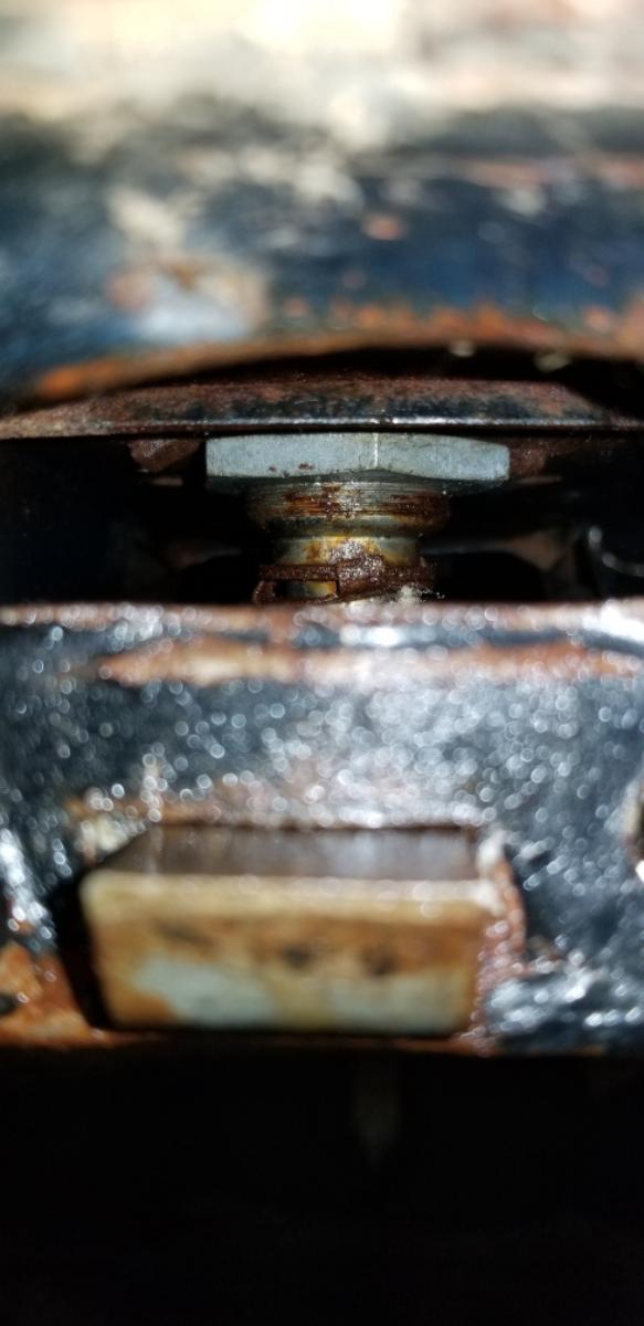 I have my great-grandparents' 41 Merc sedan. Until this year, it was last on the road in 1971. At some point before it was taken off the road, the trunk latch had quit working (evidenced by the fact that there is an old chunk of wood stuck in behind the latch that keeps the trunk from closing completely). I'm not sure if the problem is that the lock is actually locked, and that disconnects something to prevent it from retracting the latch, or if there is a pin missing that should lock the latch shaft into the handle shaft. I would like to take the handle off to see ans well as clean and lube parts, but I can't see how to get a wrench in to loosen the retaining nut on the back of the handle. It looks like it's just about a 2" retaining nut, and the design of the door doesn't have a cover that can be taken off to access it. The only access is a 1" by just over 4" slot on the opposite side from the latch. I've attached a couple images of the mechanism. The two screws visible when showing the latch shaft and the license plate light don't hold a cover. They appear to hold the latch assembly in place within the compartment.