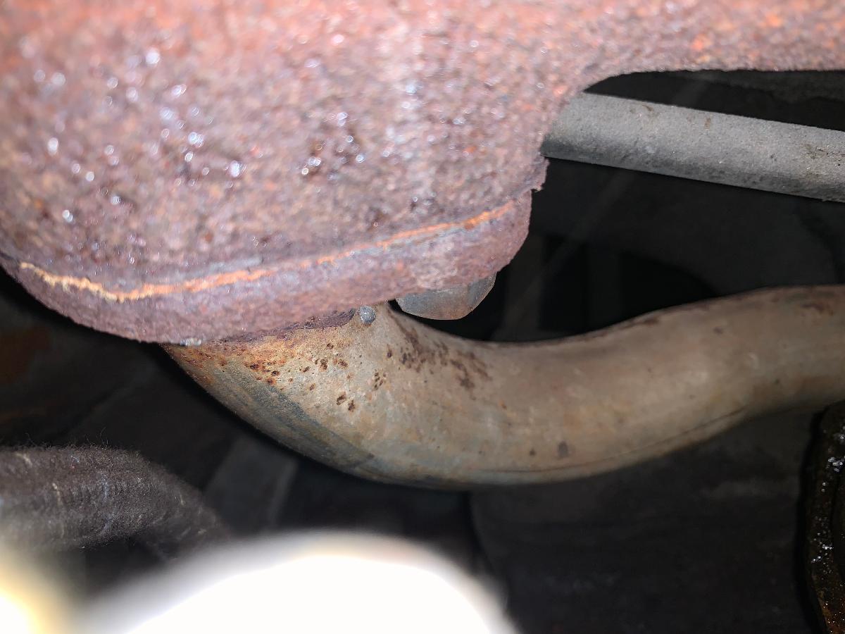 I took some images of my Rh and Lh exhaust manifolds specifically where the Muffler shop welded the pipes to the flange. I appears the Rh side shows some evidence of a small leak?