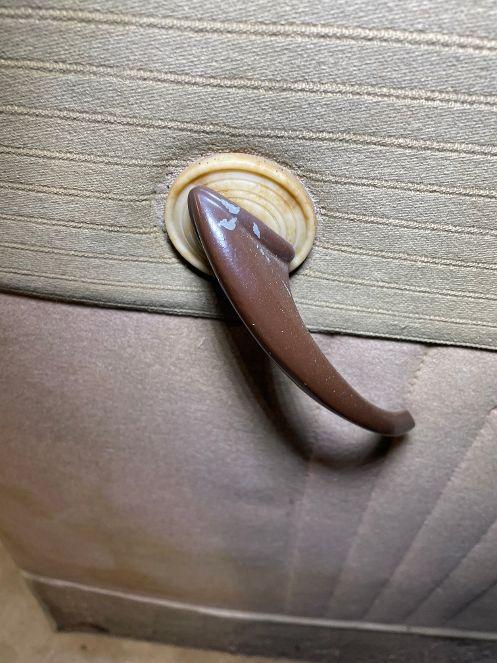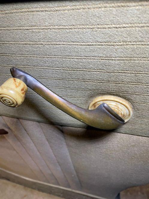 Tom Would love to get an email IF you would mind sharing and comparing info for 39 and 40 Mercury's as we have two 39's and one 40. Here is why I said gold for the handles on the 39......6 of the 8 handles on our car are "gold" finish as you can see......two are the brown you speak of. ALSO one of the differences that is more noticeable in the interior of our car is the lock for the glove box lid, note there is NO chrome trim around the finger indention for the lock. As I said all the glass in the car is dated 10-38 and our frame number is just barely into 5 digits. SHOULD BE IN DIFFERENT POST - SEE COLOR POST