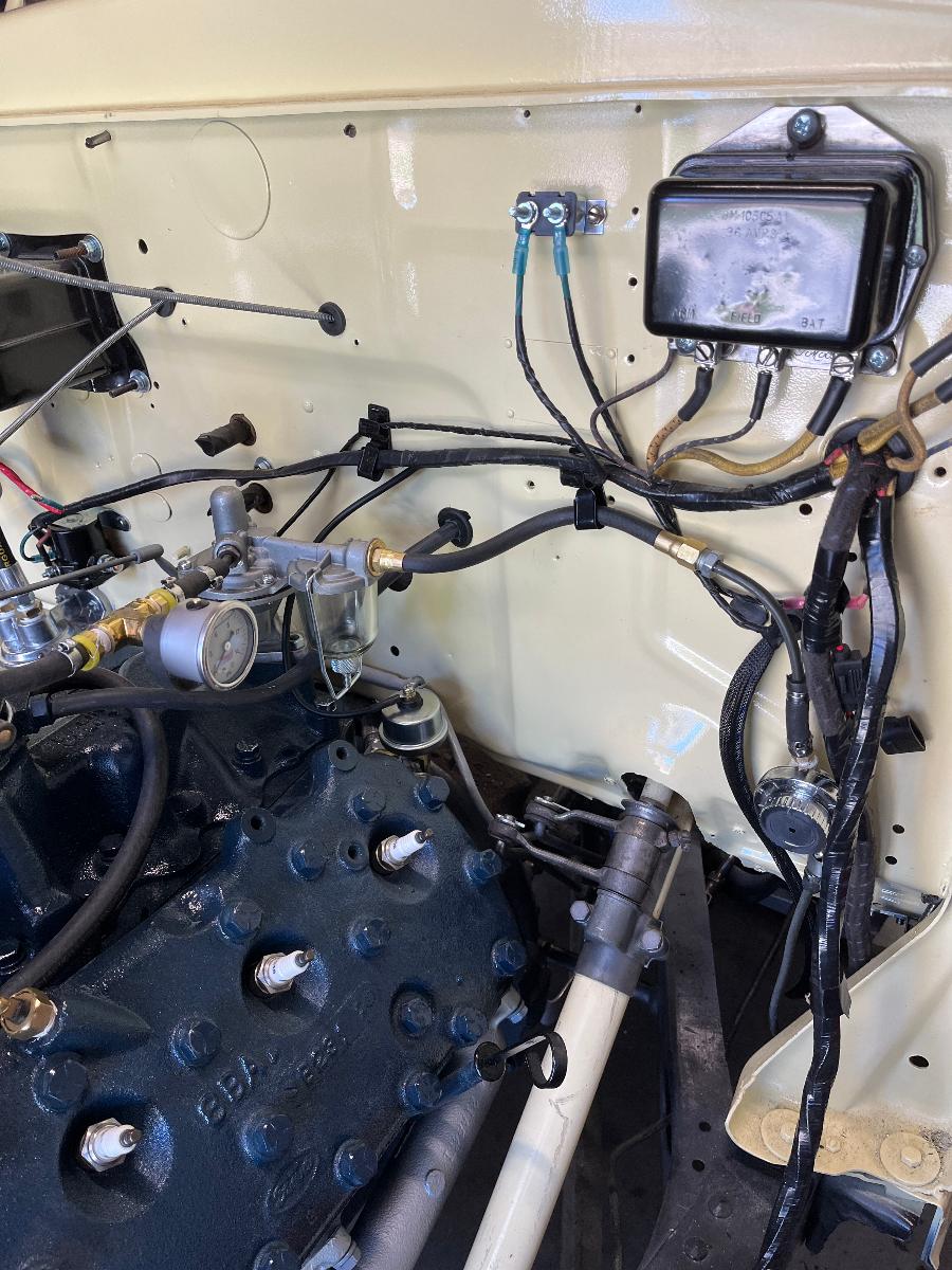 1. My question is how did they run the wires from the factory out of the firewall? I know that at least most of them came out from the big oval hole on the driver side, did some (engine?) Come through the hole right behind the fuel pump? I see where the stock starter relay, horn relay, and voltage regulator go. That is no problem, I am mostly looking to see how the factory ran the wiring.