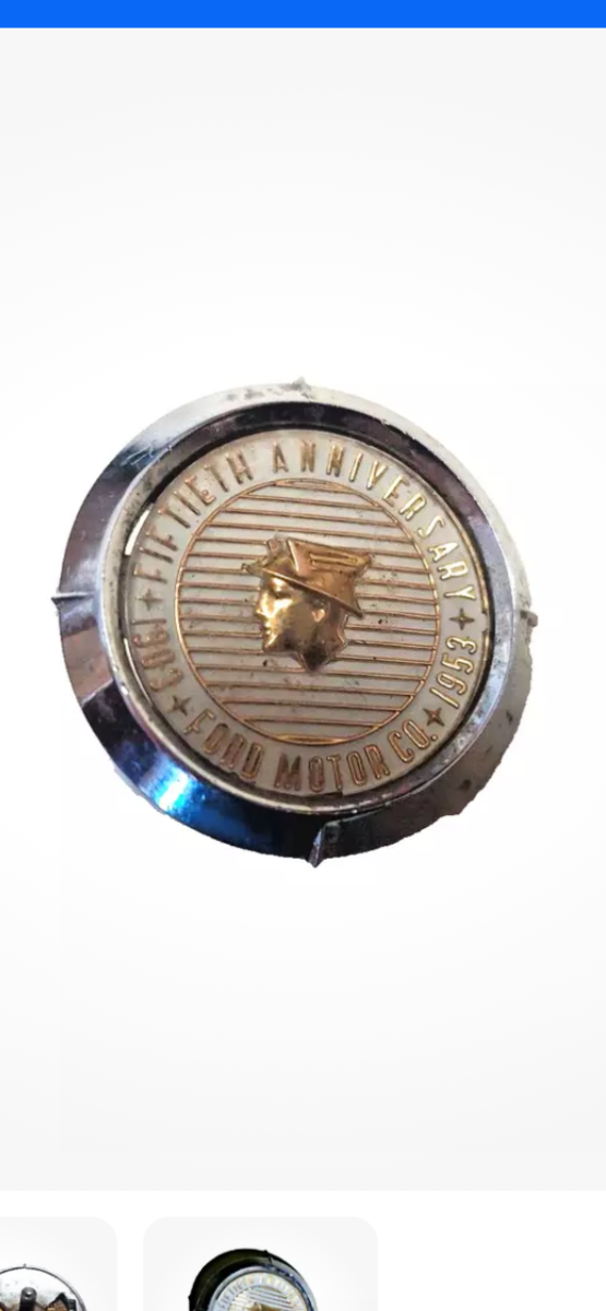 On the 1953 Ford the 50th anniversary emblem was positioned on the horn button in the center of the steering wheel. Perhaps Mercury positioned the emblem in the same place.
