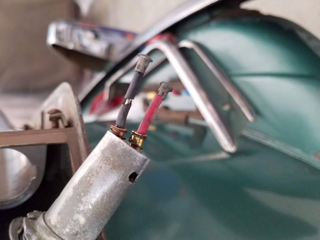 For everyone - I've not been able to isolate the root cause here but after pulling it apart for the umpteenth time over the last several months I slid the insulating plate with springs back up the wires to test the terminal strength connection and the attached is what I found. Basically the ~70 year old wire insulation is falling apart along the full length of both wires. Whether this has anything to do with this brake light problem or not I do not know (the black wire is for the tail light) but I am going to suspend further work here and replace both sides with new (likely repops). Posting this in case anyone ever runs in to the same puzzling issue. Regards - Steve