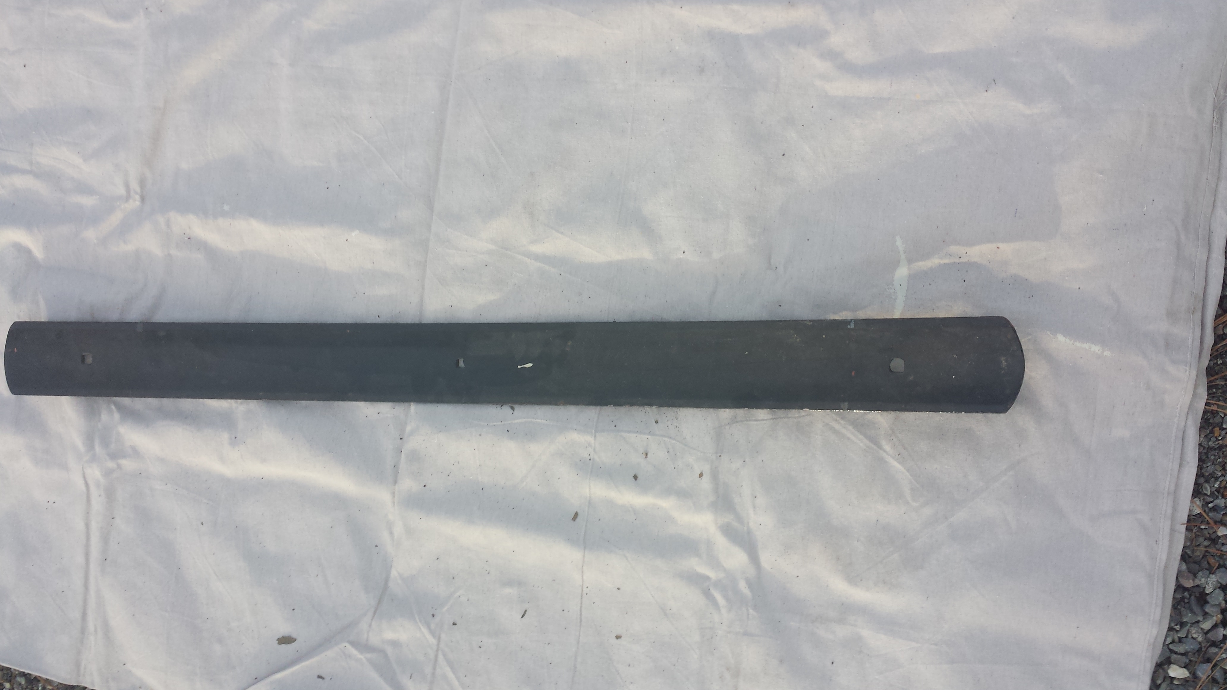 Hello, I have a Black bumper measuring 52" wide, 1/4" thick, and 4" high with 3 Square holes. I BELIEVE it to be a late 30"s truck bumper but am trying to confirm.