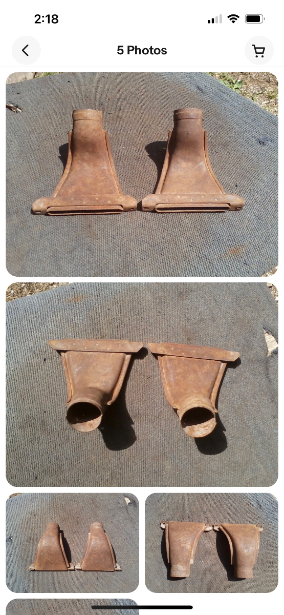 Looking for a pair of defrost vents for a 1941 Ford pickup. They look somewhat like the attached photo from Ebay which is too big, 5 1.2 inches. They are 4 inches from mounting hole-to-hole and have a 1 3/4" OD heater flexible tubing connector. They're larger and narrower at the vent than the ones supplied by the Early V8 Ford parts suppliers. Please email photo and price with shipping. Thanks, Glenn