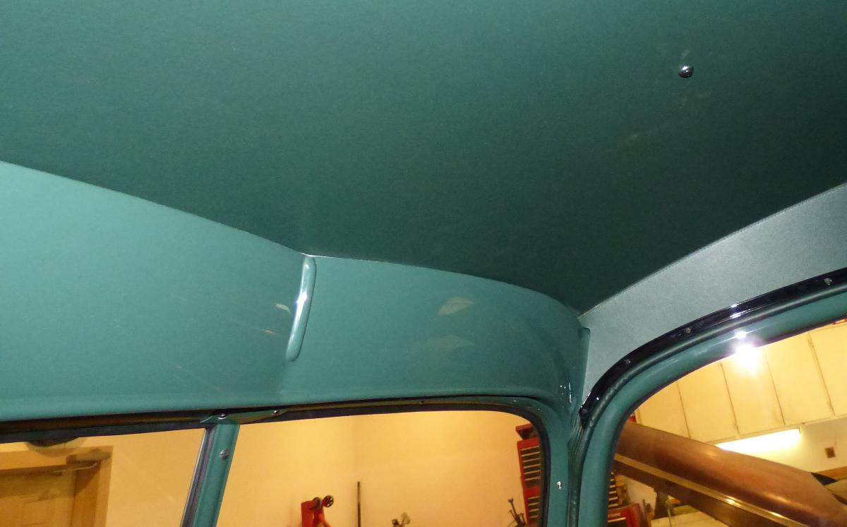 I believe that if your pickup was to have a inside rearview mirror, there would be dimples in the metal header above the windshield mouldings. This would be similar to the dimples in the metal header if there were to be sun visors in vehicles. You may have passenger vehicle interior mirrors and that is why the mirror brackets do not line up. Hopefully a late 40's pickup owner will reply and clarify.