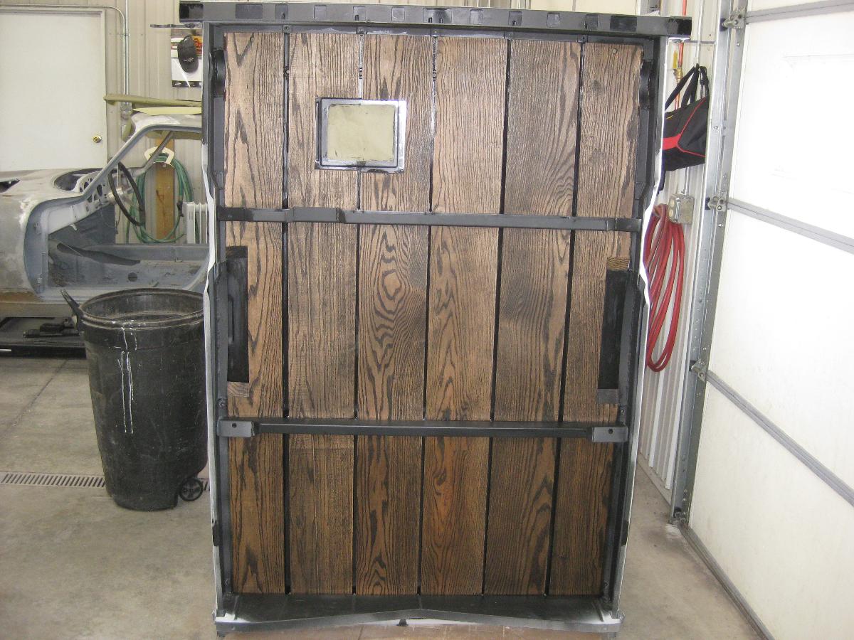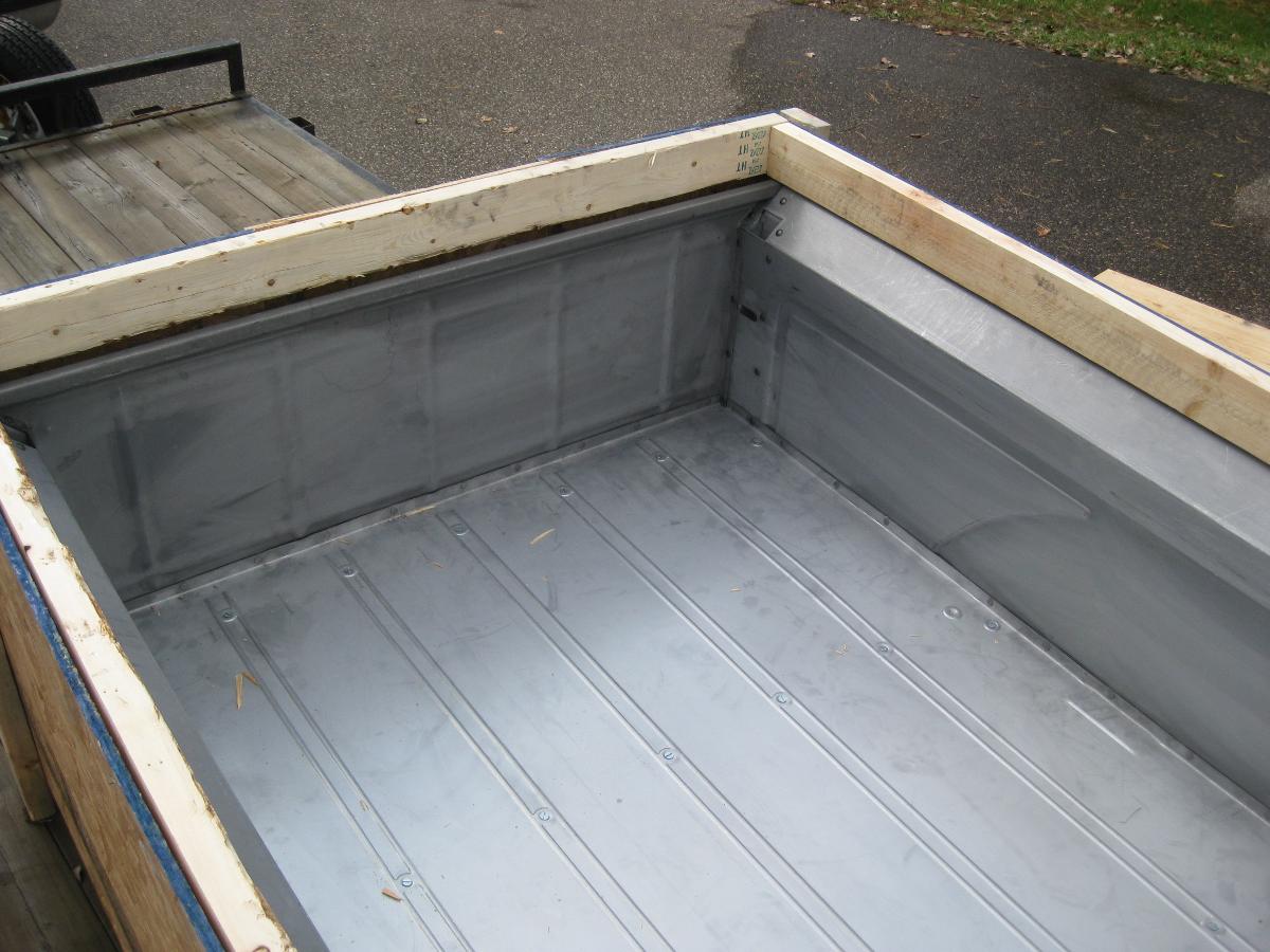 Hope these pictures help. This is a reproduction 1936 Ford pickup box manufactured by Mac Hils of Missouri. It has a metal floor, riveted to the side walls. The third picture is the bottom view -- oak wood panels. So, yes there is wood in a pickup box, but the wood is not the floor that you see. Please note, the wood has not been treated yet in this photo. It should look like the second photo after being stained.