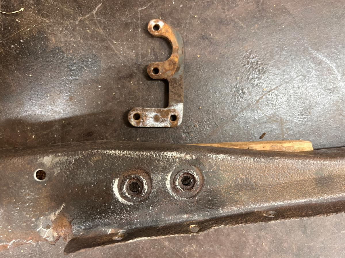 This is my panel support brace for the left side. I bought these two items at different times so 1. clearly the bracket for the light is for all 1/4 inch cap screws. 2. the support brace is 5/16-24 threaded nut facing the rear. In the green chassis book two lamp brackets are listed depending on the use of a rear bumper. Basic number 13470. The hdwe options include 5/16-24 x 13/16 for the lamp bracket and they are designated as 35-36 parts for a Pickup. As long as the panel support brace is 35-36 I want to use the whole bed. This is the only difference I see.