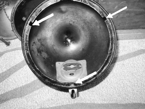 Here are 3 photos showing the notches in the headlight bucket rim and closeups of the spring attached to the reflector and sitting in the bucket rim notch.