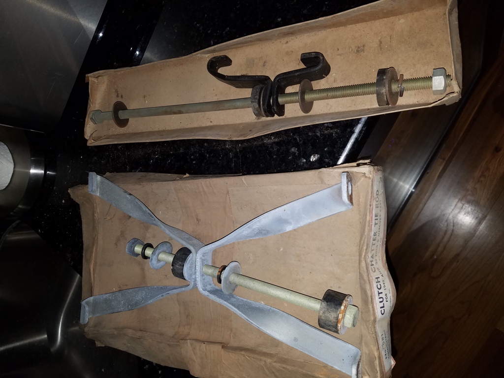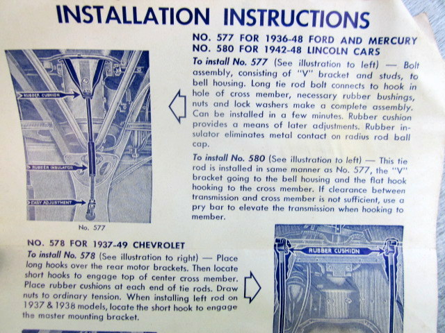 Thanks Ted & Tom. Know from the box the larger set is intended for '49 & '50s Fords, it's the straight rod that has me a bit perplexed as to what year(s) and model(s) it is intended for. Those are the original boxes - hate to throw these things away but ultimately may need to be done. Have yet to hear one solid endorsement for the effectiveness of anti chatter rods, yet have heard dozens upon dozens of comments on their lack of effectiveness/total ineffectiveness, hence realizing value from these is not in the equation here at all. Several examples of the '49 - '50 model are on eBay now (painted) for ~$30 to $50 for sets that may likely have been on there for months/years. My thinking is that the straight rod on the right is not for Fords - possibly (dare I say the word) Chevys. Clearly the one marked '49 - '50 Fords is for that. (EDIT - I just now found after posting this reply an identical rod on eBay with the label still on the box - #578 for '37-'49 Chevrolets, so file 13 on that one for us Ford lovers) Not looking to sell - just to get them in the hands of a fellow member that can/will use them. Reach out if'n you wanna try 'em '49 & '50 owners. A minor dust-off with fine sandpaper/emory cloth and a coat of gloss, ahhh, satin, ummm, semi-gloss black paint... Steve