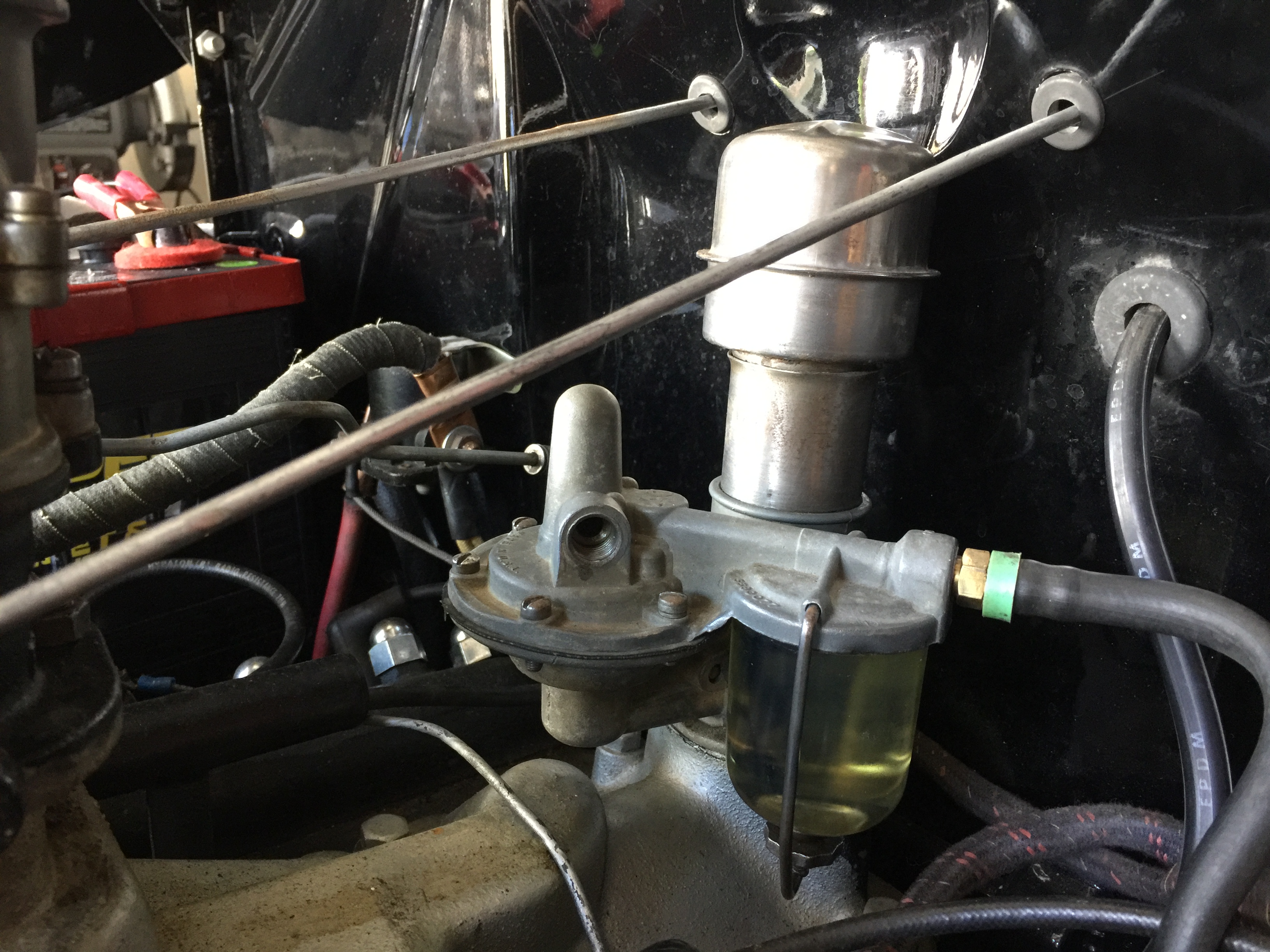 I already tore it apart and cleaned up the insides. I isolated the pump by disconnecting the line to the tank. I checked for pressure by sucking and blowing into the pump. Seemed to hold air pressure so I hooked up a fuel hose to a gas can inside the engine compartment with 2 feet of fuel hose and it would not lift any fuel. Is the picture I posted the correct fuel pump for that year?