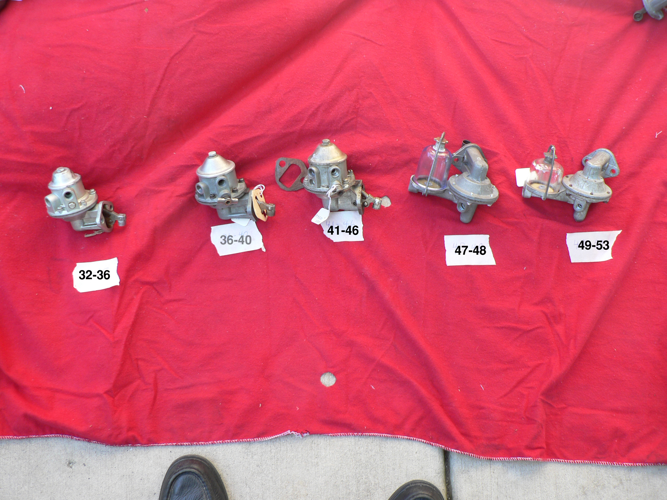 Thanks Tom Nice line up of Fuel Pumps. It looks like I have the 47-48 fuel pump on my 40'. I think I'll order one from Mac's or Carpenter's.