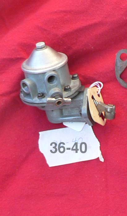 Yes Tom O , that is a correct late 36 pump ie: offset inlet an outlet and no 4 tab top cover. Completely correct for late 36 -40. Funny thing is he just ordered a 47-48 glass bowl pump from me. Wish I had his phone # to find out what he really wants. ???? ken ct. 1-203-260-9780