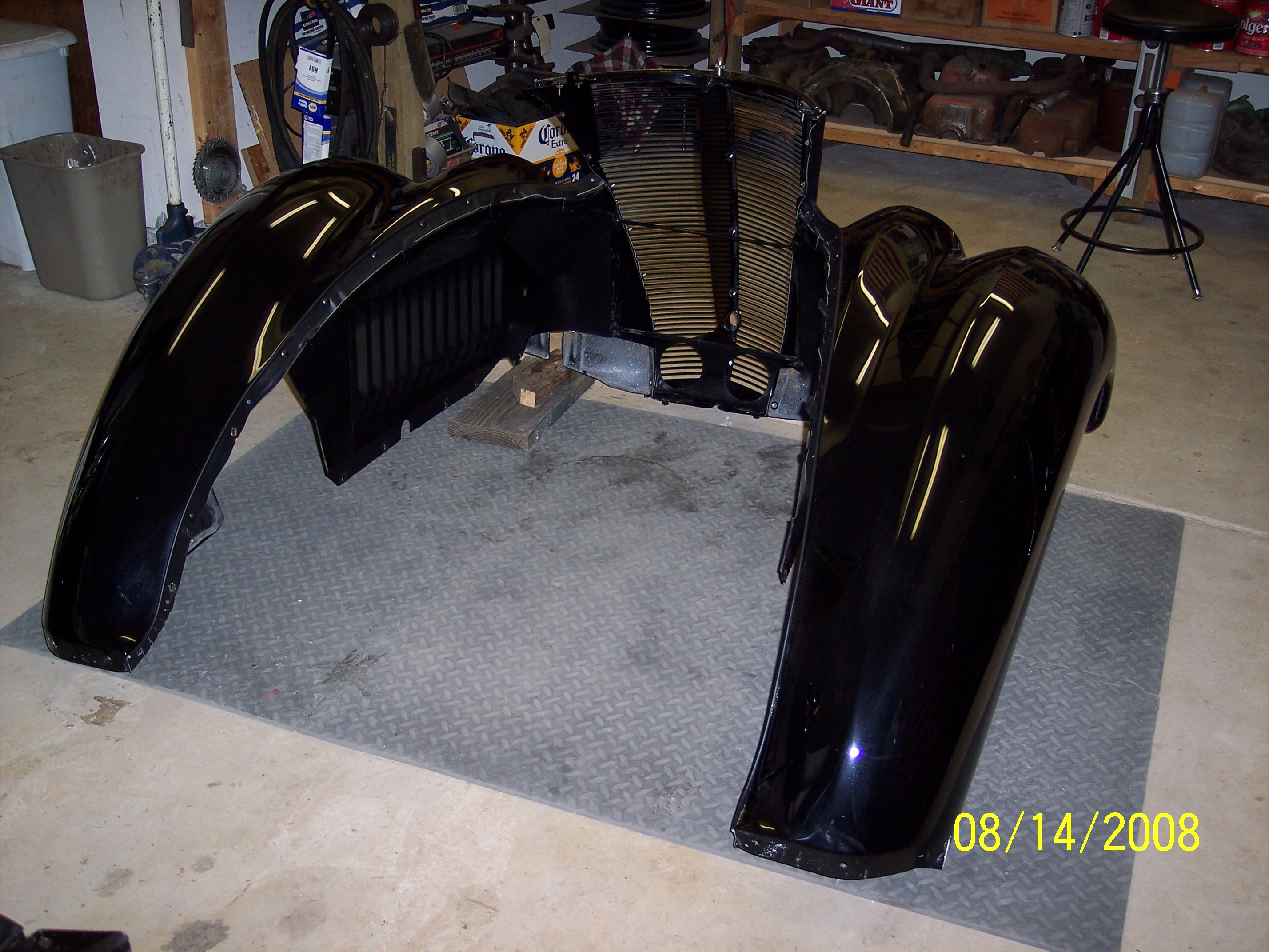 Hello, I need help in determining: Is this a 37 part? Does this part (fender apron?) mount inside or outside of the grille/fender assembly? Please refer to pdf with yellow arrows. The attached pics were taken from underneath the car looking forward at the inside face of the grille. If this is the correct part, then there will be some pulling & tugging no matter if goes inside or outside, since neither seems to fit well at this stage. So goes the 37 front end assembly (: Thanks for your help, gregg