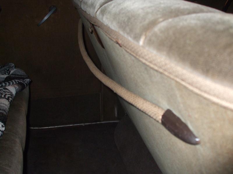 It is called a robe rail. You will have to hunt for an original and they are hard (not impossible) to find in good condition. It is my understanding that the robe rail is used to hang the robe when the robe is NOT in use. Vintage photos I have seen of backseat passengers in pre war cars show the robe - when in use - being draped over the legs of the passengers and not draped on the robe rail. You could not use the robe rail in my family's 1941 Buick Series 90 Sedan in that fashion; the robe rail is really far from the rear seat. . . . 78-730B