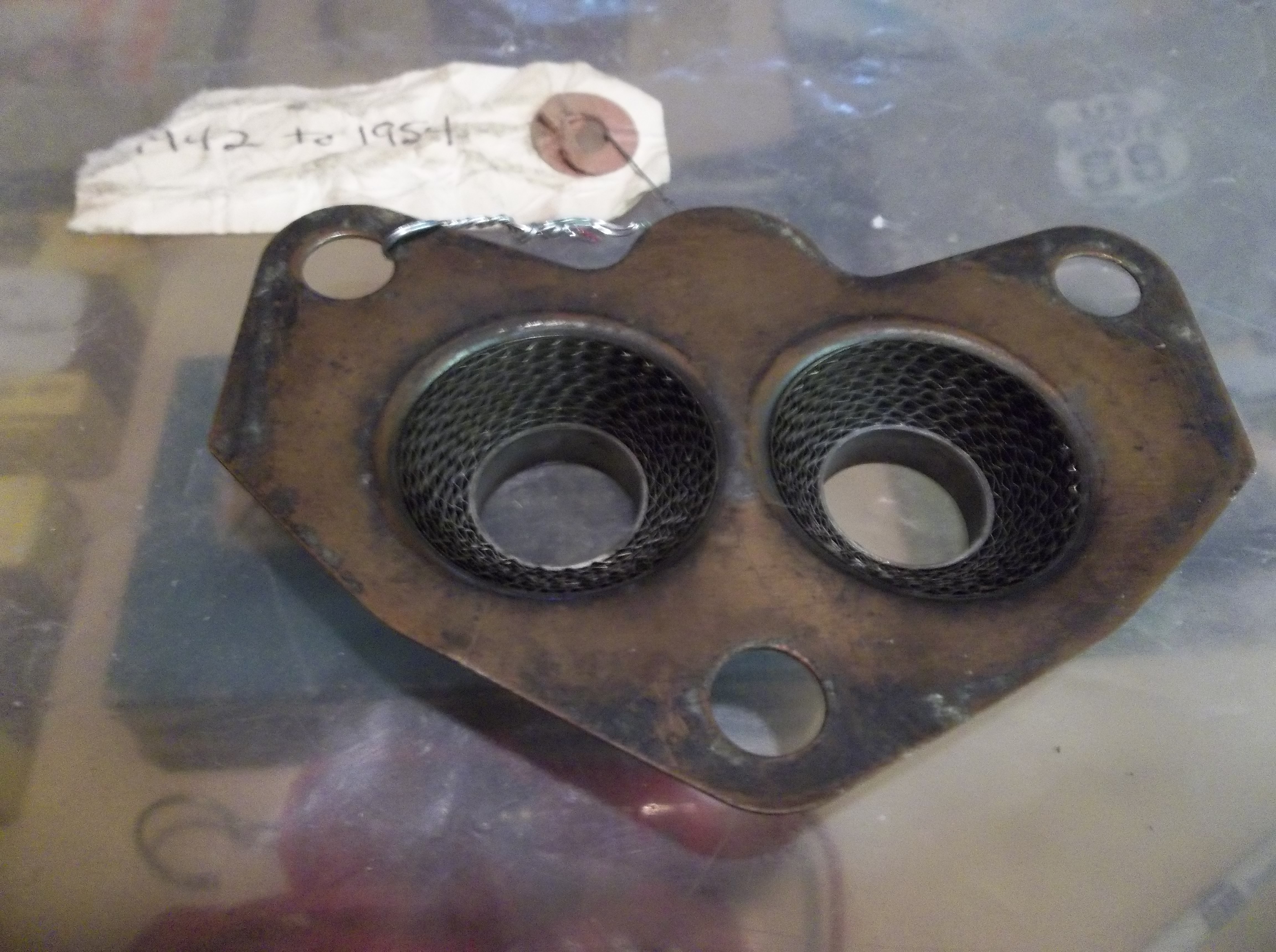 The tag, which may be a reproduction, says "V8 fuel atomizer" and on the back "1942 to 1954".