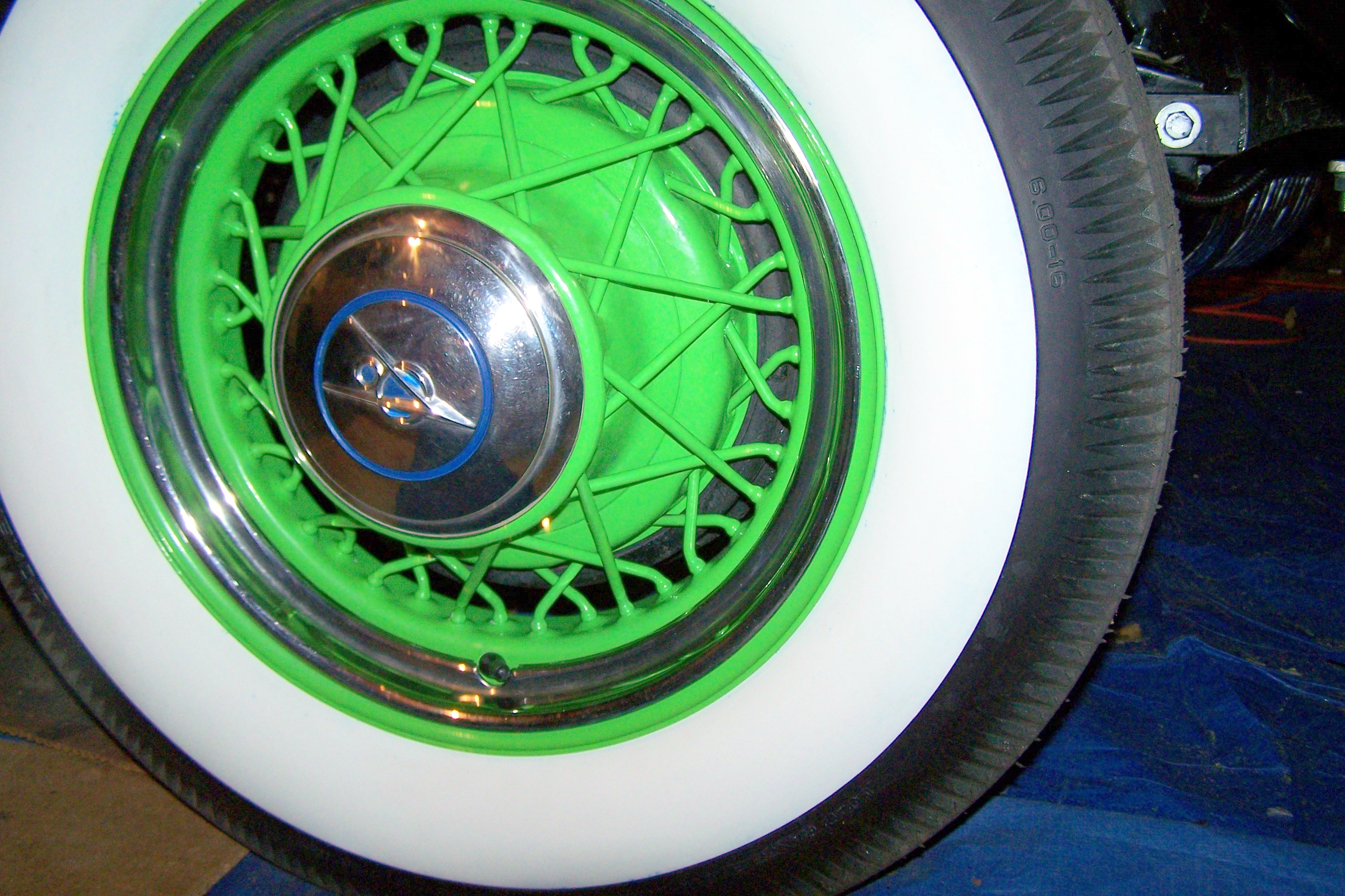 Power coating is the only way to go. Enclosed is a picture of a wheel on my '35 after five years of use. still looks new. Tom