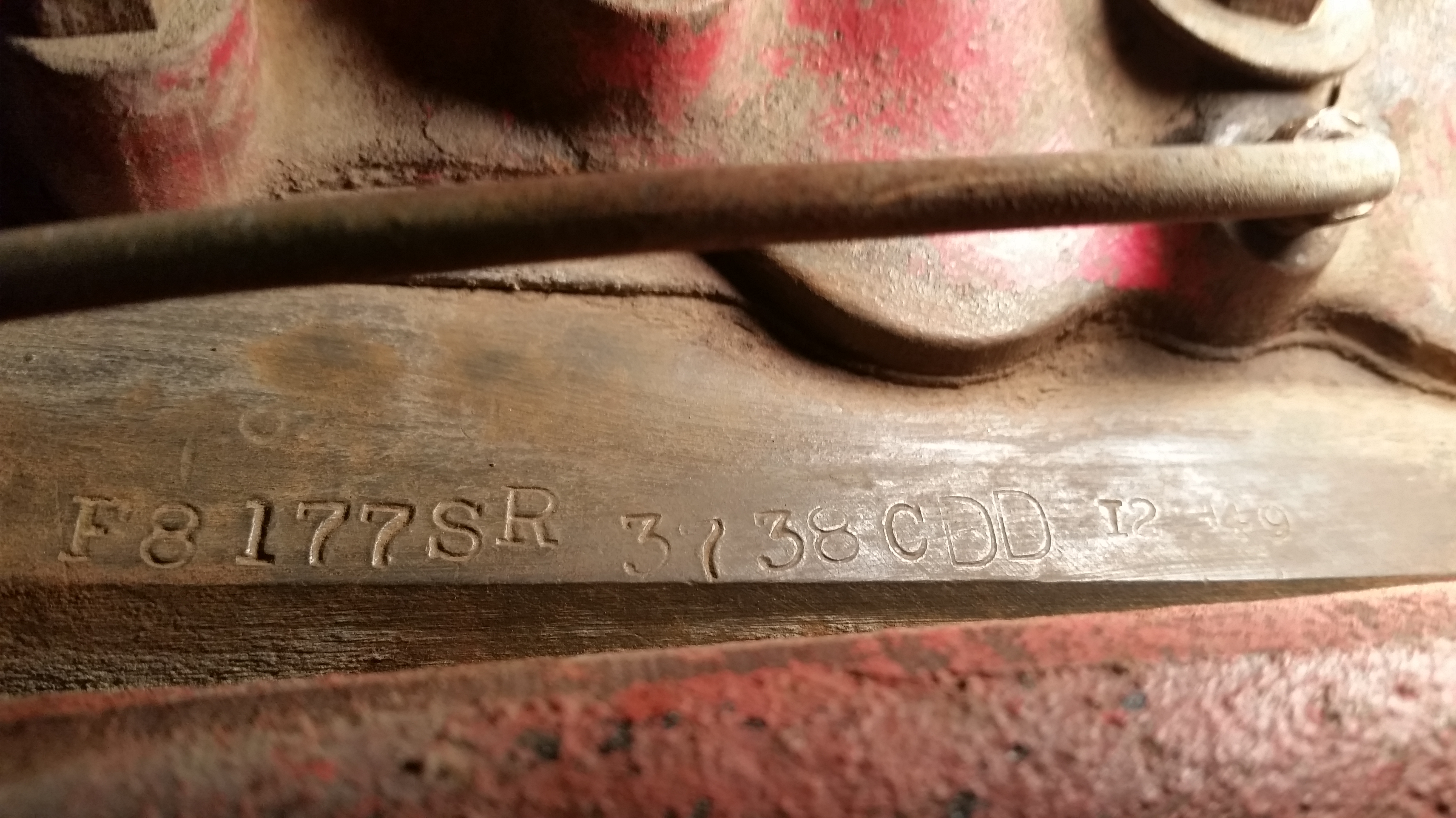 Cleanning up the engine and found these numbers. I was wondering if any one knew if it may have been a reman. engine #'s F8177SR 3738cDD then T2-149, or the T could be an I worn down. They are on the drivers side front of block between head and intake. Thanks for any information