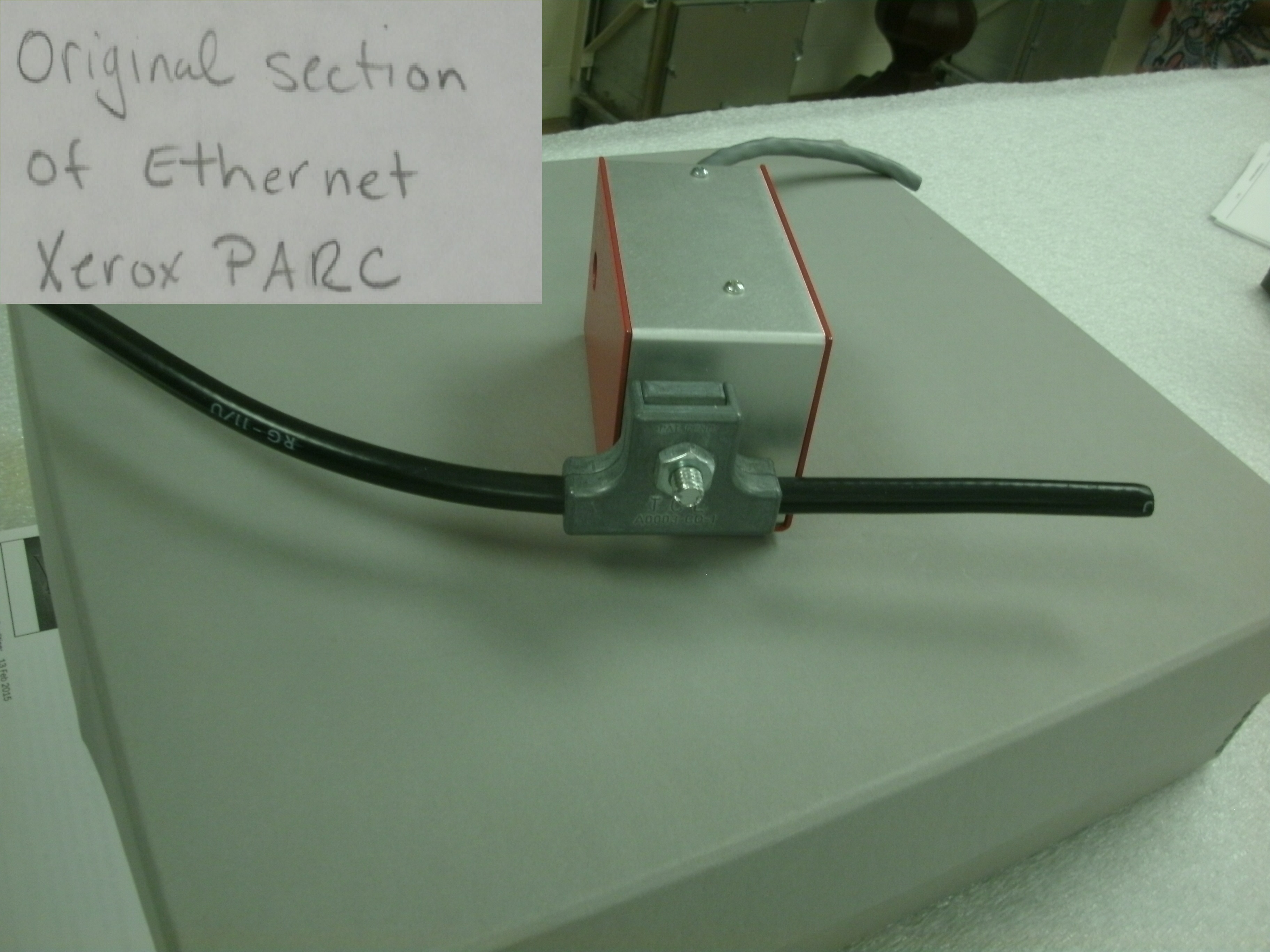 Because I'm way too heavily invested in PC's, his was one of my geek-out moments. This black hunk of wire would have been used to make a group of computers into a Local Area Network. The red box and grey wire would go to a workstation. Before the internet, LAN's had to be worked out, and this artifact represents some of the very earliest moments of something we are all using right now. I believe the box is called a vampire tap because it has a spike that drives through the black cable to tap the common signal going through the black one. Our guide/conservator said this was recently collected from the Palo Alto Research Lab, or PARC, a legendary development center!