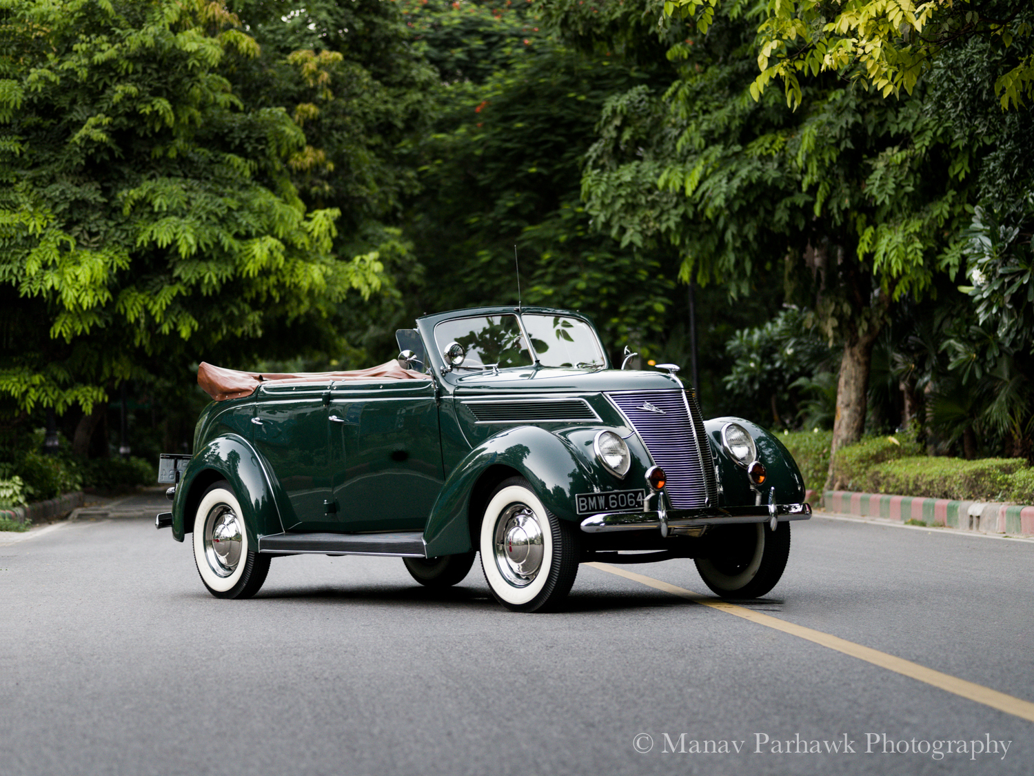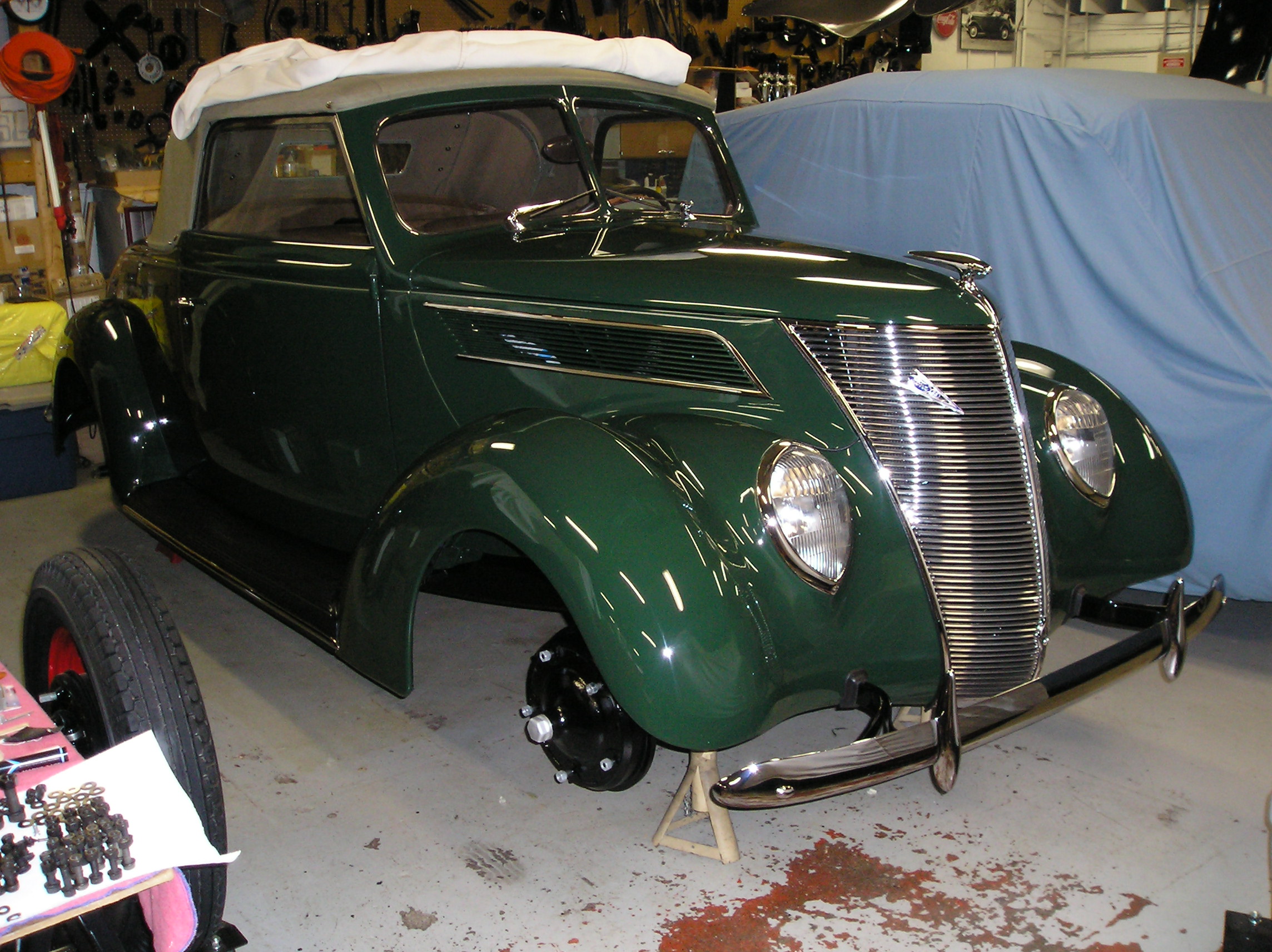 I am currently repainting my 1937 Ford V8 Phaeton convertible. The car was supplied in Bright Vineyard Green and I am re-painting it the same color with the help of spray-out cards that I had purchased from the Autocolor Library. I would like to understand what the correct color, width and appearance of the side stripe should be and what line it follows below the bonnet and along the edge of the trunk. Any images or illustrations would be wonderful.