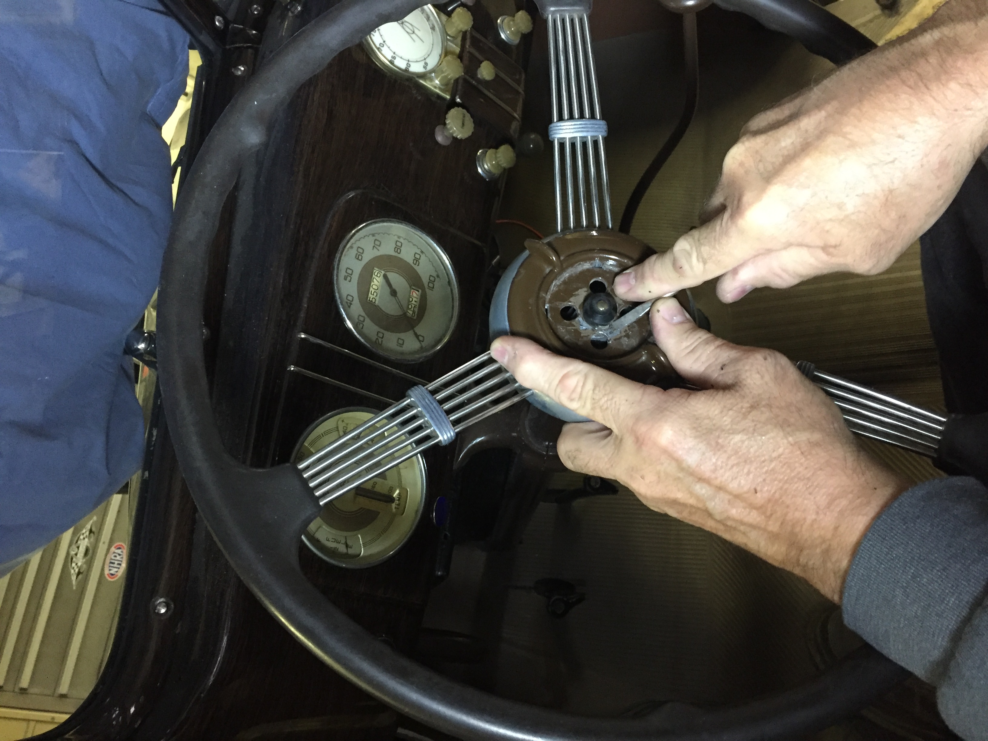 Working on my 37 club cabriolet and can't get the horns to work via the horn button. When the headlight wire connector to the steering gear box was removed and the center pin of that connector was grounded, the horns blew. My next thoughts that the horn wire in the horn rod (in the steering column) may have been broken, and not getting grounded. I then pulled the horn rod and checked the continuity. All good there. As an added insurance while the horn rod was out I added addition solder to the end that is in contact with the headlight connector. Still no ground. Anybody know what my next steps should be/ Thanks, Jakes