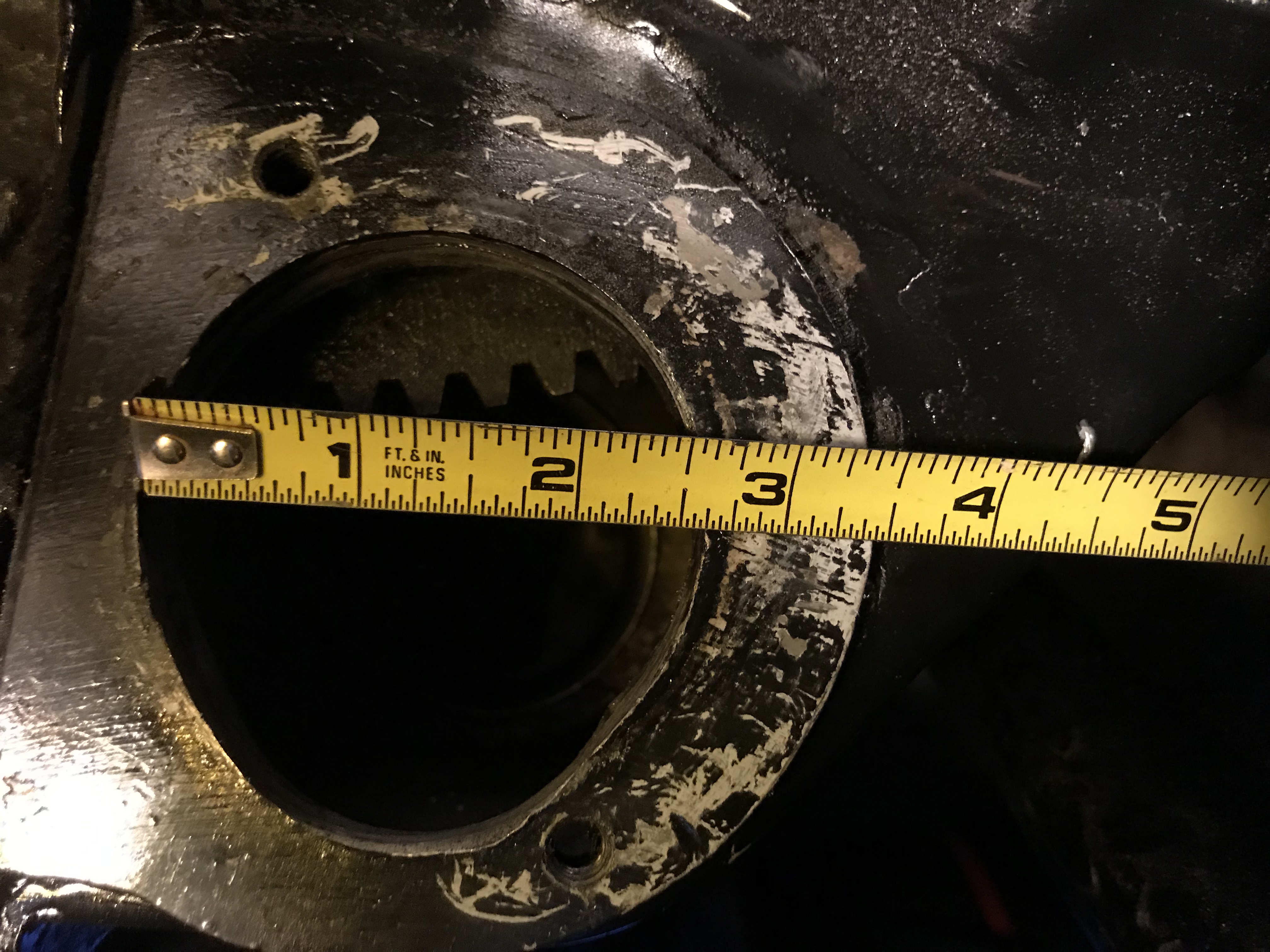 Well, I went out and checked my 1937 85hp, the big engine, oil pan and the starter flange is 3" I.D. You might feel around inside, behind the plate, for the original diameter.