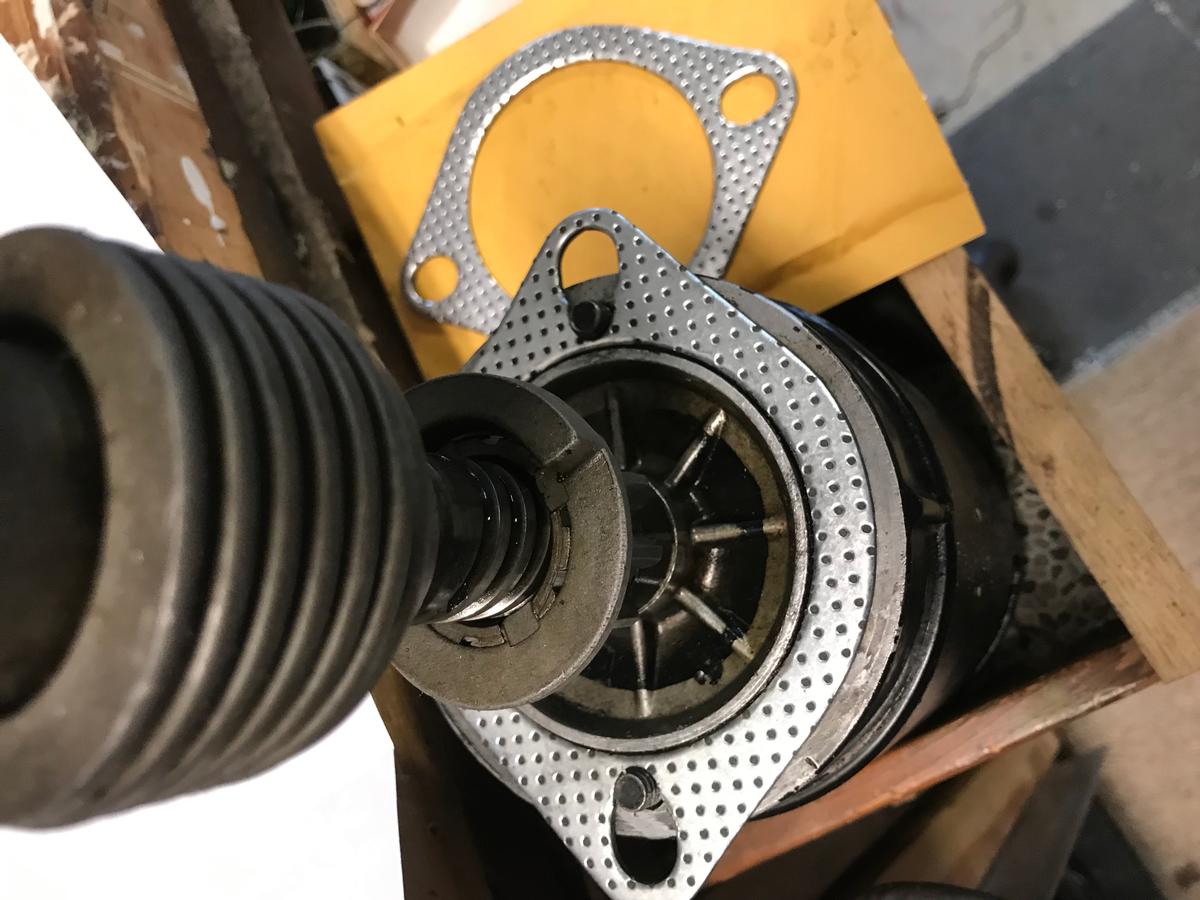 i ended up spacing the starter away from the pan with a couple exhaust gaskets. pic attached. works fine. for now anyway. the gasket has a 3" hole which fits around the lip perfectly. I had to enlarge the bolt holes a bit. someone obviously enlarged one side of the hole in the pan, i'm guessing to make room for the Bendix to fit thru. I still have to wonder what the pan came off of in the first place.