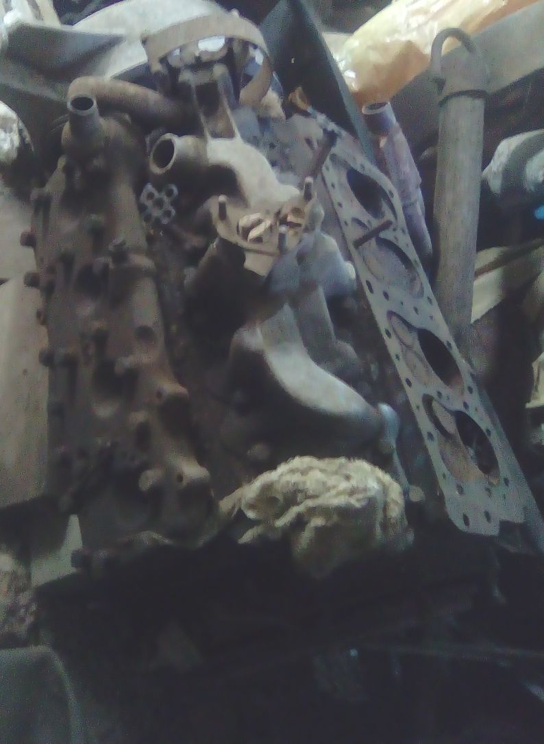 3. "Rust ball engine" 24 stud, water outlet in middle of heads, front dizzi mount. Built in bell housing. Only good for parts if I am lucky. Seriously rusty.