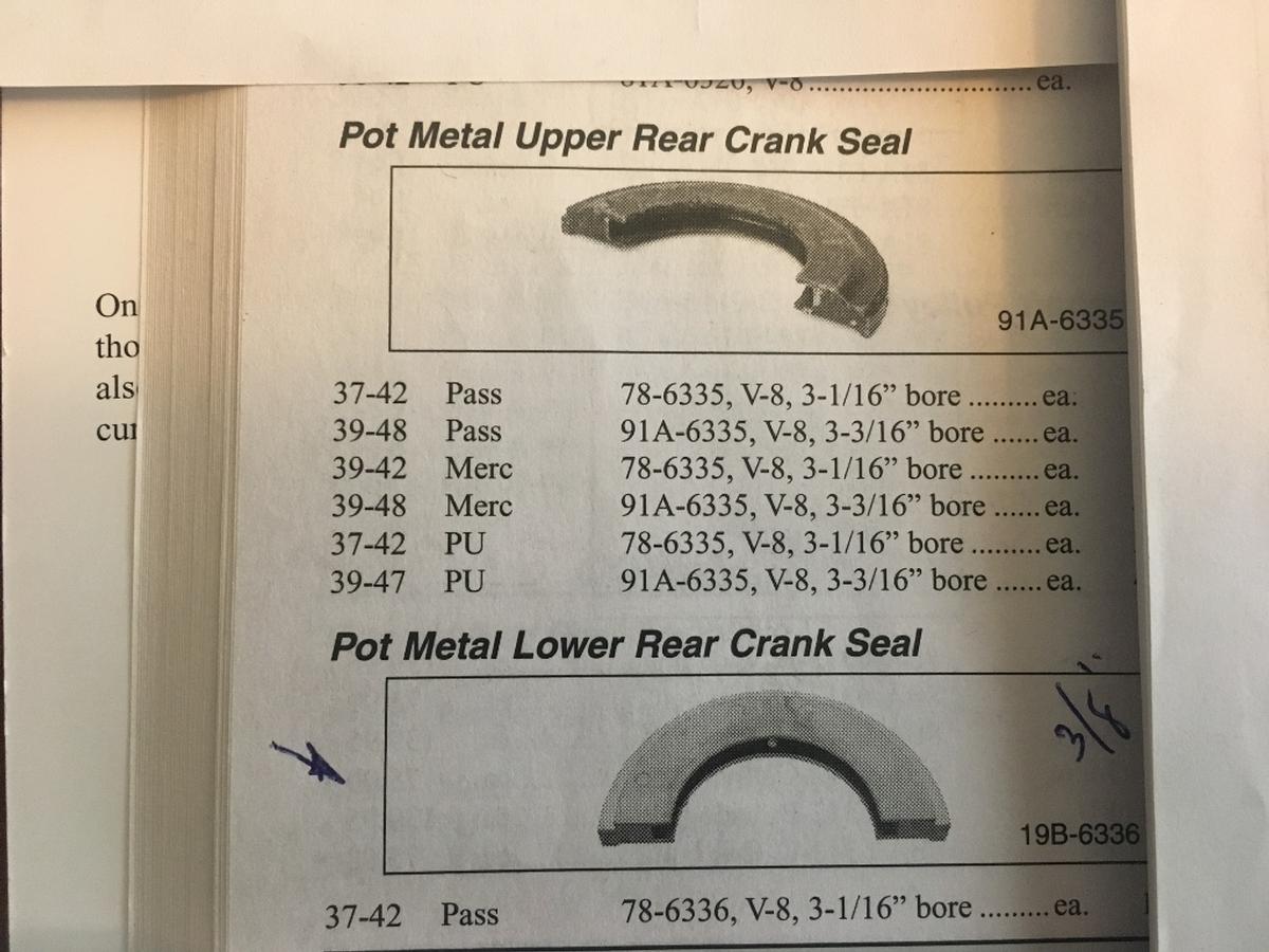 Look up Red,s Engine talk Jan/Feb 2003 he explains the labyrinth rear seals. Early engines only had the pot metal seal in the block. I have a 1938 engine with no seal in the lower rear main cap.