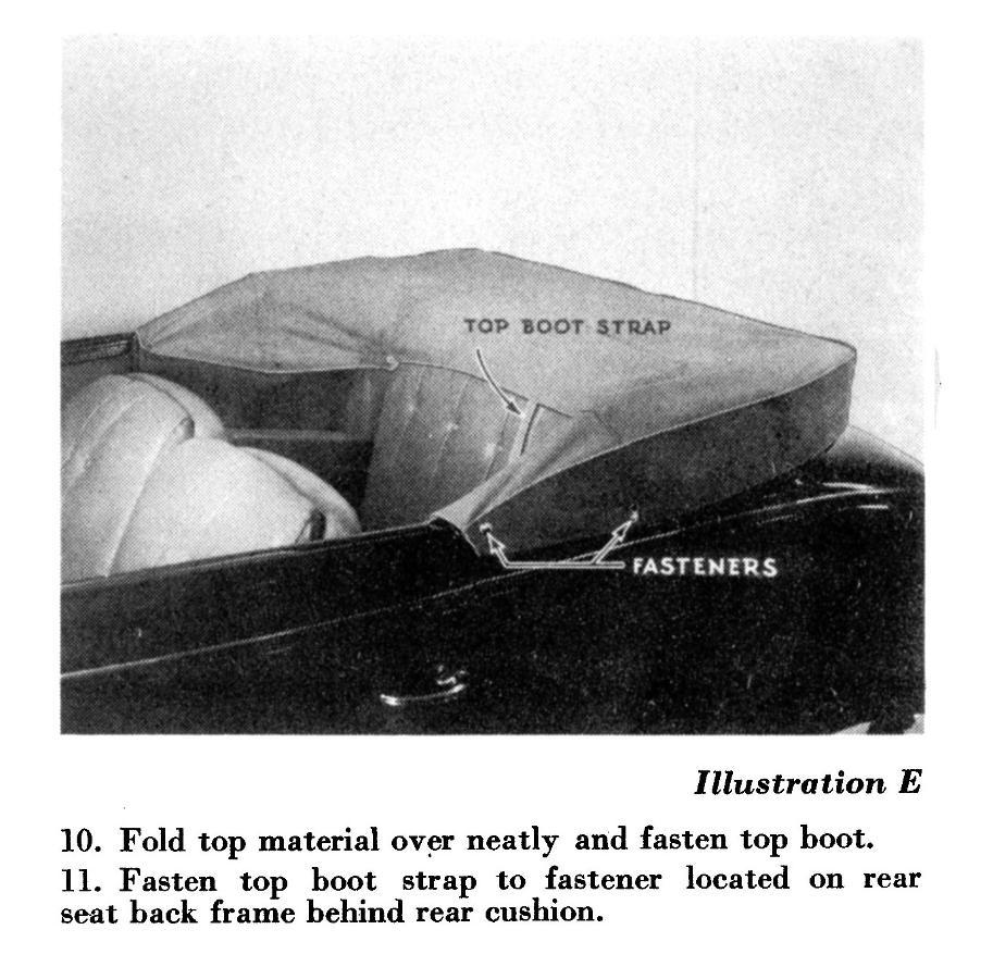 Hello again. In my final step in the completion of my restoration project to my 37 club cabriolet, I am installing the convertible top boot. The snaps are installed and the boot fits excellent. My problem is that I am not certain just how the portion of the boot fits over/ under the top of the back seat. The boot is a Lebarron Bonney boot and comes with an inch strap about 16" long in the center of the boot that would go (I don't know where). I did not receive any instructions nor could find anything on the web. If anyone knows how this boot is fitted over the back seat or has any photos that would be GREAT.