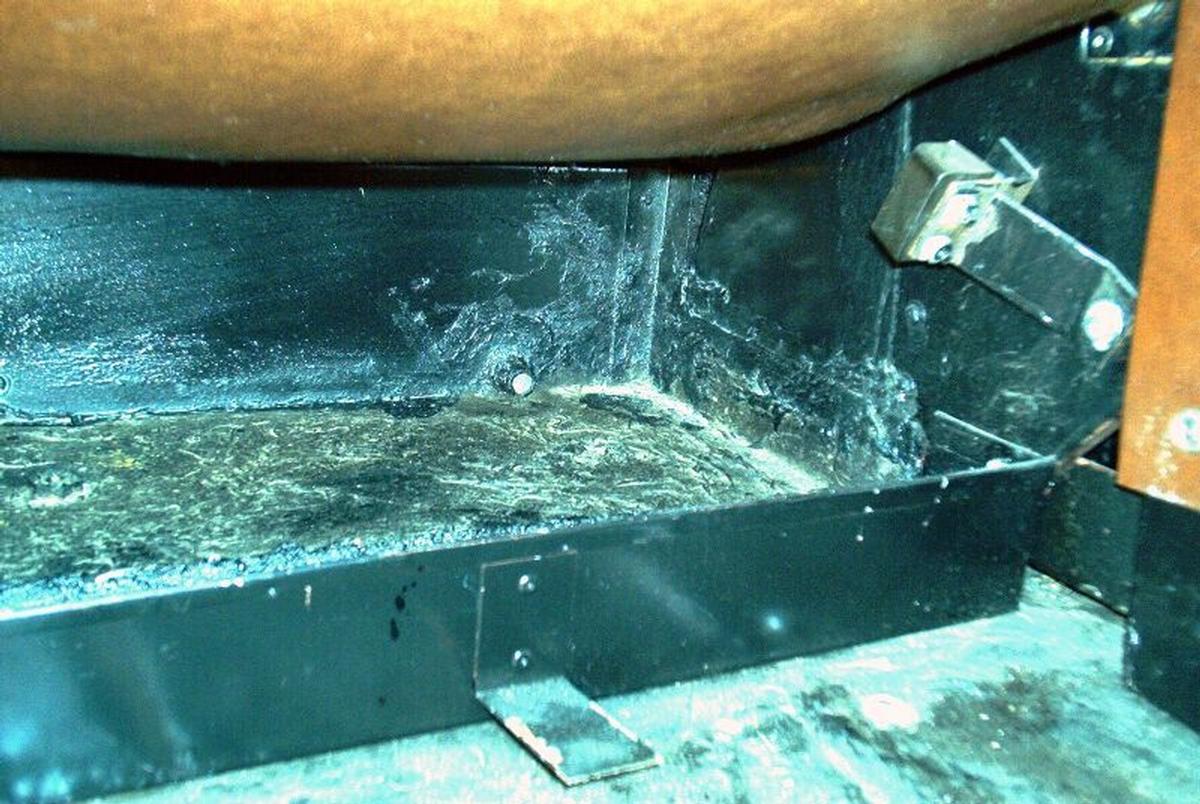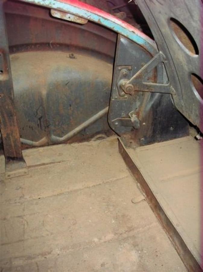 our 38 conv. coupe same way, there was enough of the dam left for a pattern, it had a rubber gasket under it, and was scr*w*d to the floor pan, I made a new one, make sure your back pan has drain holes in it,I drilled holes in the lowest places, then poured red rustoleum primer in the pan and let it drain out the holes..........