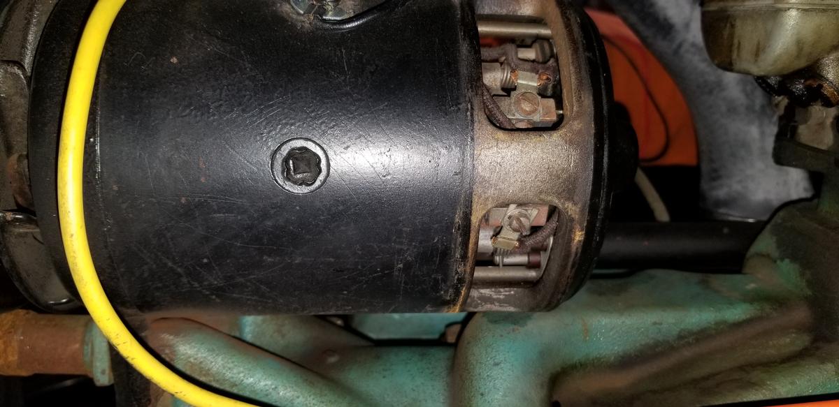 I am back at the house. Based on MG's last note I checked out the driver's side of the generator (see attached picture 133503.jpg). Both of the brushes on the driver's side pivot out from the armature, but do not rotate either clockwise or counter clockwise. Is there a 3 brush generator where the third brush can not be adjusted? I've owned the '38 for 4+ years and have no engine history. The other question is the third brush frozen inplace? Do I take the generator apart to determine why the third brush does not rotate? Based on Fun Project's instructions / notes the correct setting, of the third brush, should be a little passed middle. If my third brush is the single brush on the passengers side (picture 123537.jpg) the brush is set well below middle. My guess would be the generator is not charging enough.