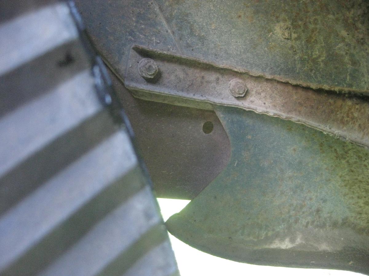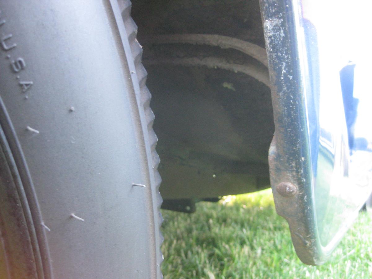 Here is a picture of the front fender rear brace. This shows how it mounts to the edge of the fender and the front bottom of the cab