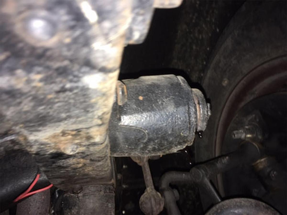 Can someone please ID the part in the photo for me, front left wheel steering suspension? Leaking grease. Any comments? Thanks.