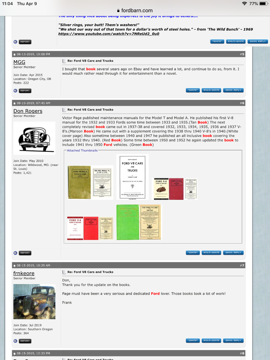 In the event some else travels down this trail I found a post by Don Rogers citing the books by Victor Page. FORD V8 CARS AND TRUCKS was listed. Found a 1947 copy on the Internet for 20 bucks. It covers from 32-40. Lots of great information. Way more info than the service bulletins, presumably taken from Ford’s service manuals.