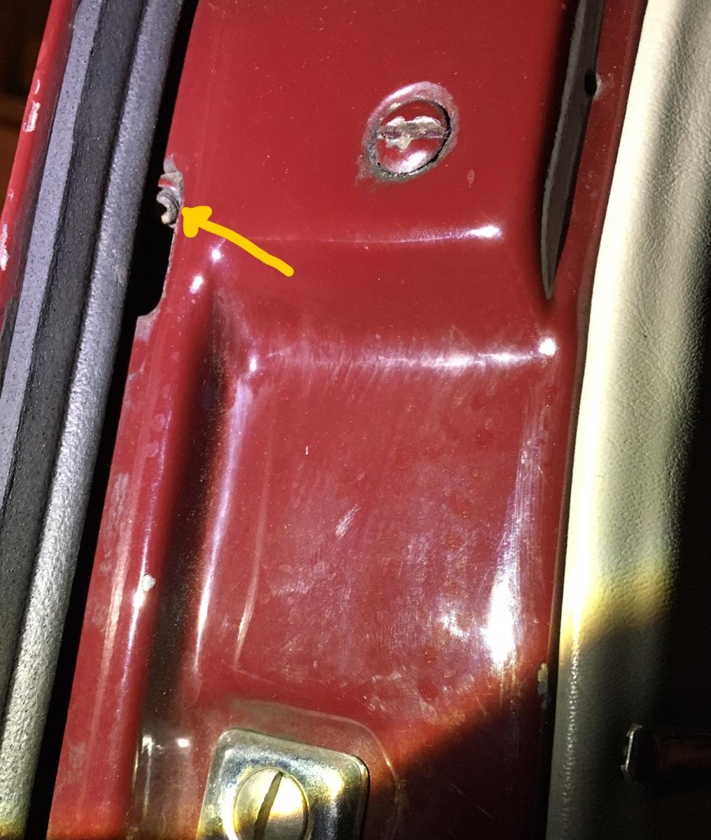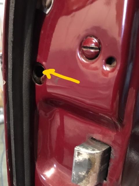 I would suggest you pull both door locks to see if they are the same code. (The door and ignition key should be the same.) If the door lock codes are the same, then the problem is with the one lock. Possibly seized, so try penetrating oil and wiggle/jiggle key in the lock. If the codes are different, then contact one of the Ford lock gurus on this site, and they can help. Not hard to remove the locks. There is a "set screw" on the back end of the door at the same height as the lock. They are sometimes hidden behind the door weather seal. There is one screw for the door handle as well, that is above the screw for the lock. (see pics) My set screws were Allen socket, which are not original. I believe the originals were slotted.