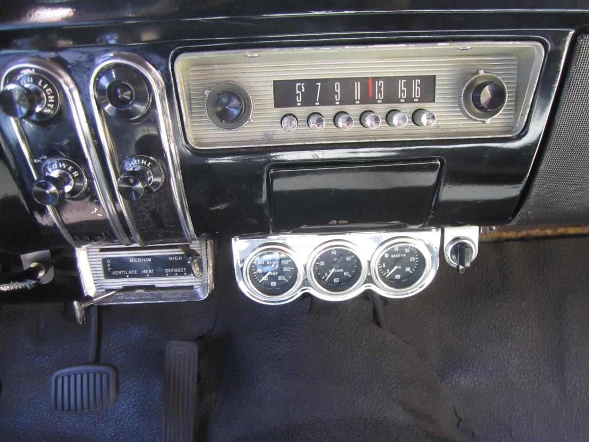 Here is a gauge panel mounted below the dash that includes three mechanical gauges. The water temperature gauge is to keep an eye on up to date changes in coolant temperature as the car climbs hills or encounters high ambient temperatures. The oil pressure gauge is to provide an accurate reading of oil pressure when the car is at idle after highway trips, when the original electrical gauge reads zero, I can be assured everything is OK as the mechanical gauge reads 20 PSI. The vacuum gauge shows how hard the engine is working and whether or not the power valve is open using more fuel.